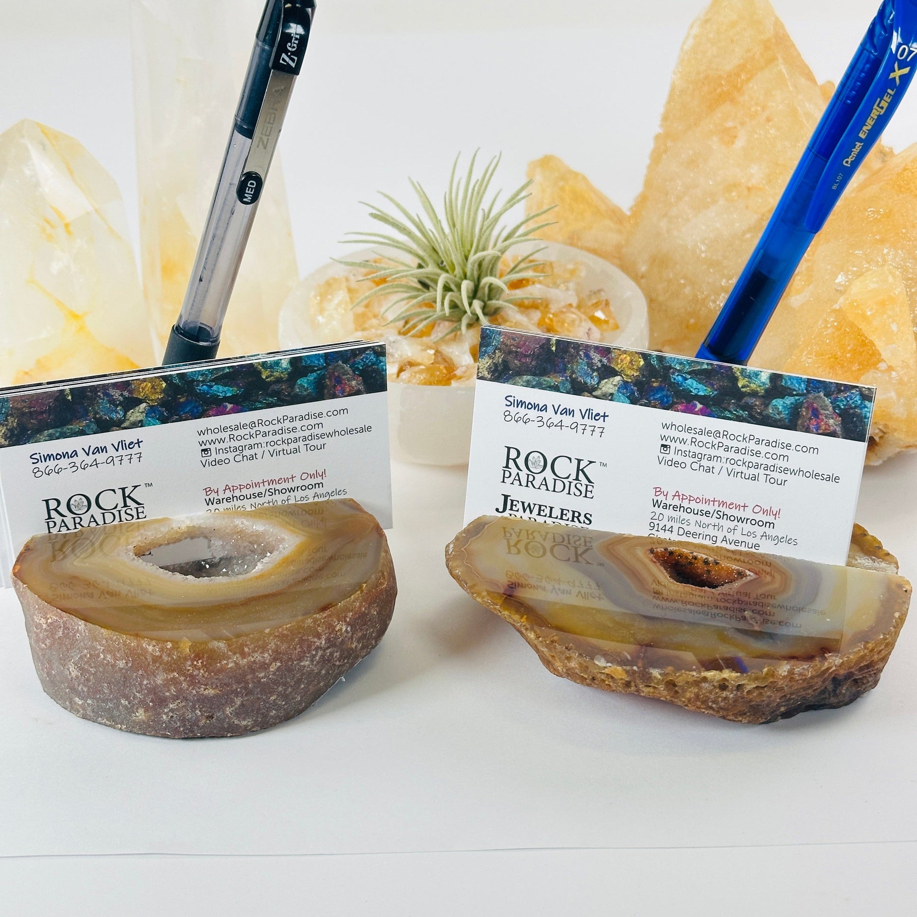 Agate Geode Crystal Business Card and Pen Holder - You Choose