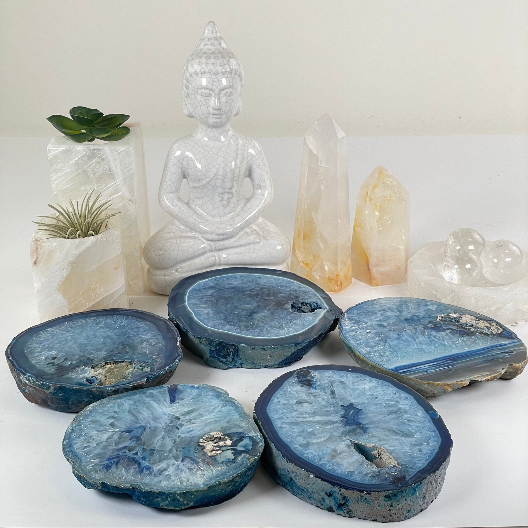 This listing is for ONE (1) Blue Agate Crystal Slab Coaster - You Choose. UOOAK-S15-65