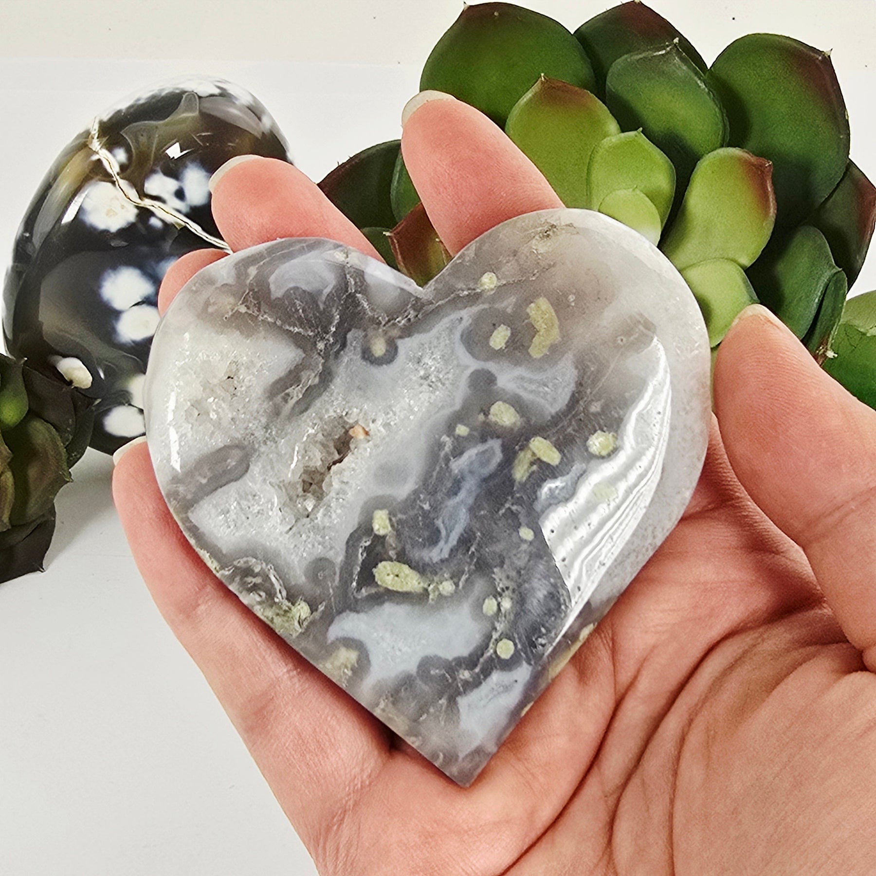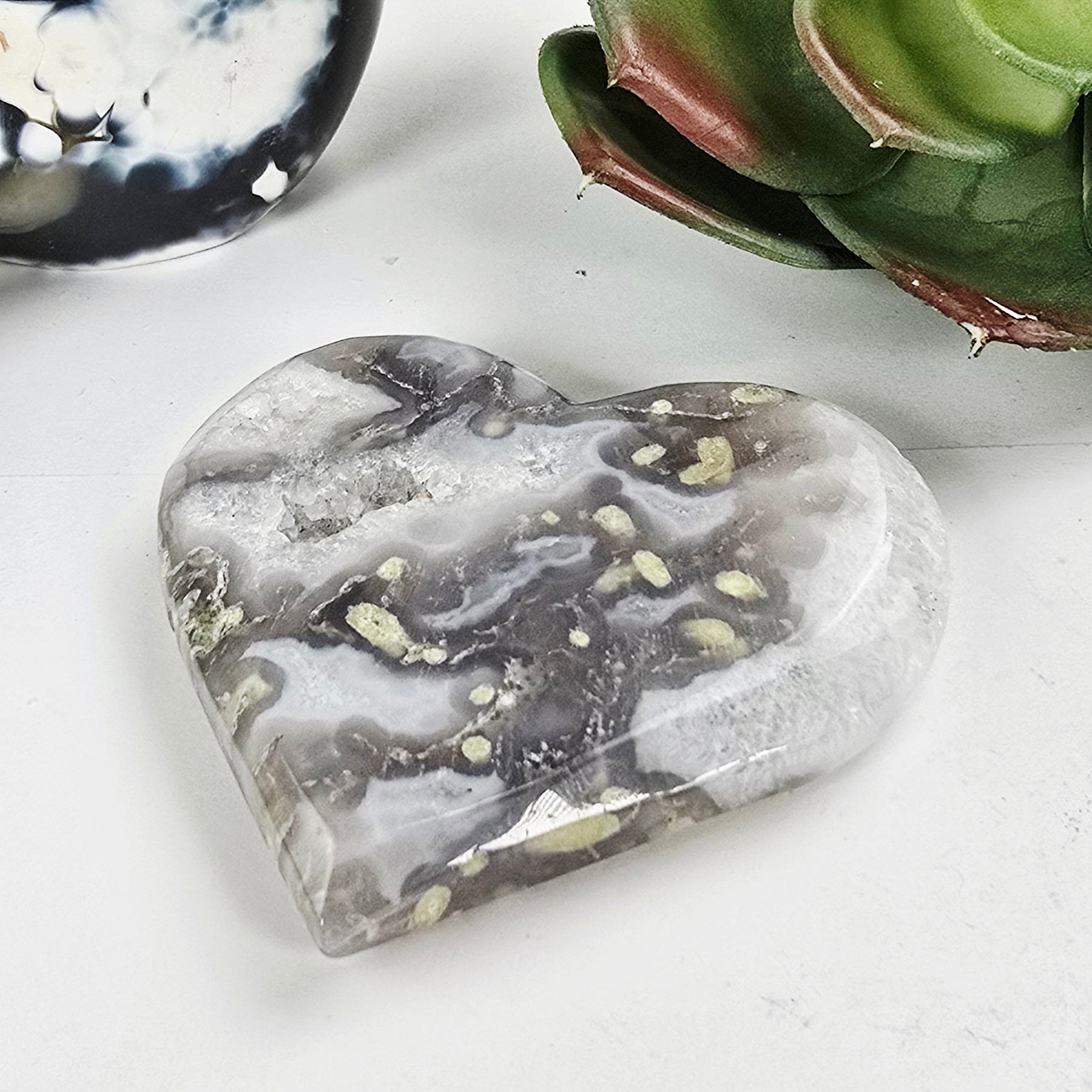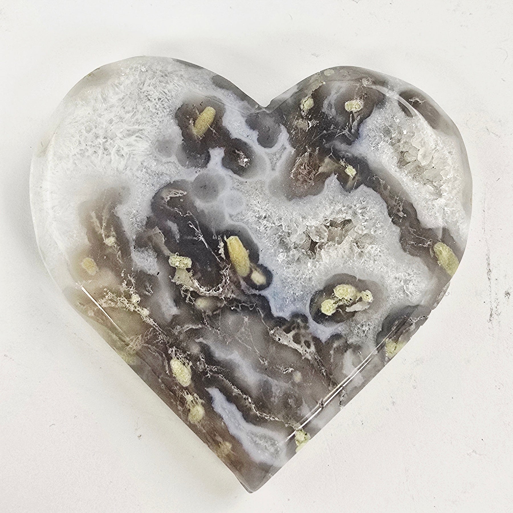 Listing is for ONE (1) Moss Agate Polished Crystal Heart ONE OF A KIND. UOOAK-SMOF-77