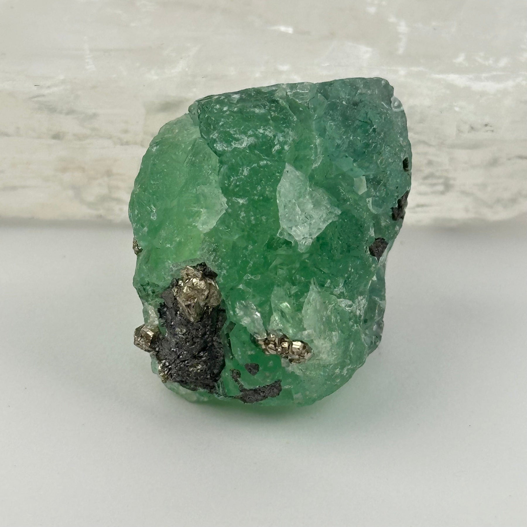 This premium Green Fluorite cluster comes from the renowned Atacocha Mine in Cerro de Pasco, Peru—one of the most respected localities for producing vividly colored, high-clarity fluorite. This exceptional specimen features vibrant green fluorite crystals paired with metallic Galena, creating a striking contrast of color and texture.