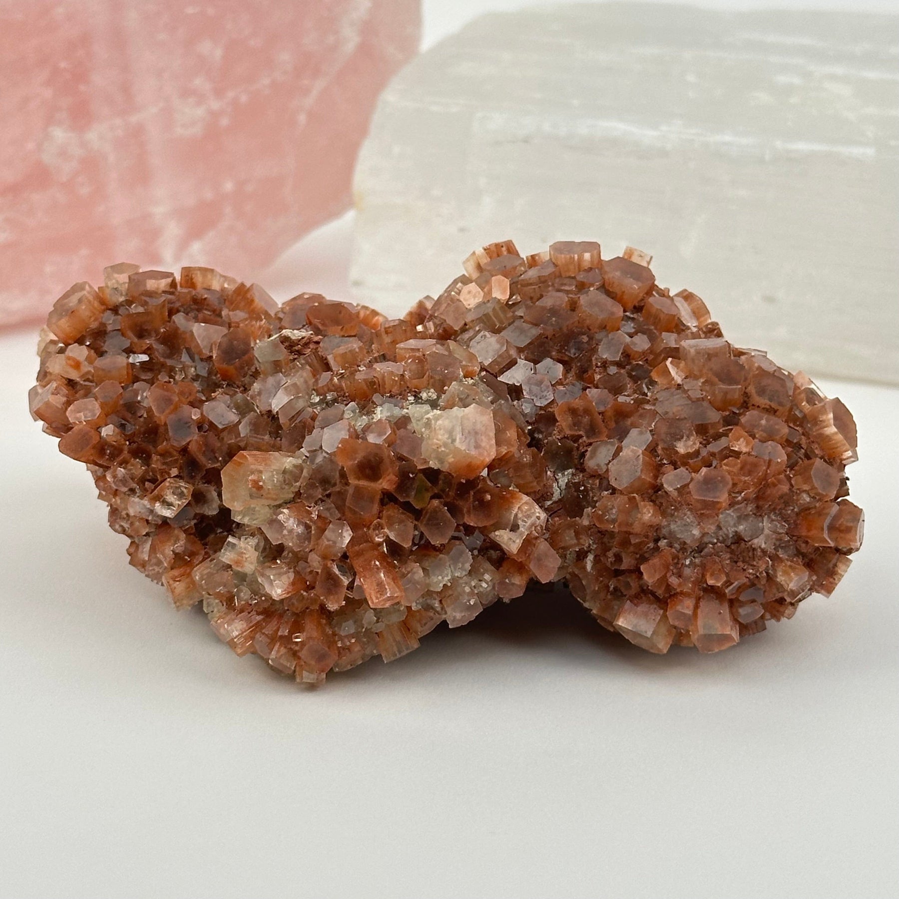 Bring bold texture and natural beauty to your space or collection with these Red Aragonite crystal clusters, offered by weight. Known for their warm reddish-brown tones and striking radiating formations, each cluster is one of a kind—raw, earthy, and full of character.