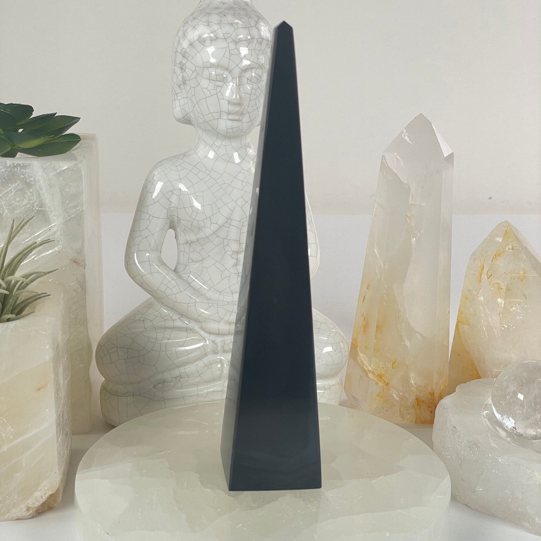Listing is for ONE (1) Silver Sheen Obsidian Crystal Obelisk - One-of-a-Kind. UP7-91