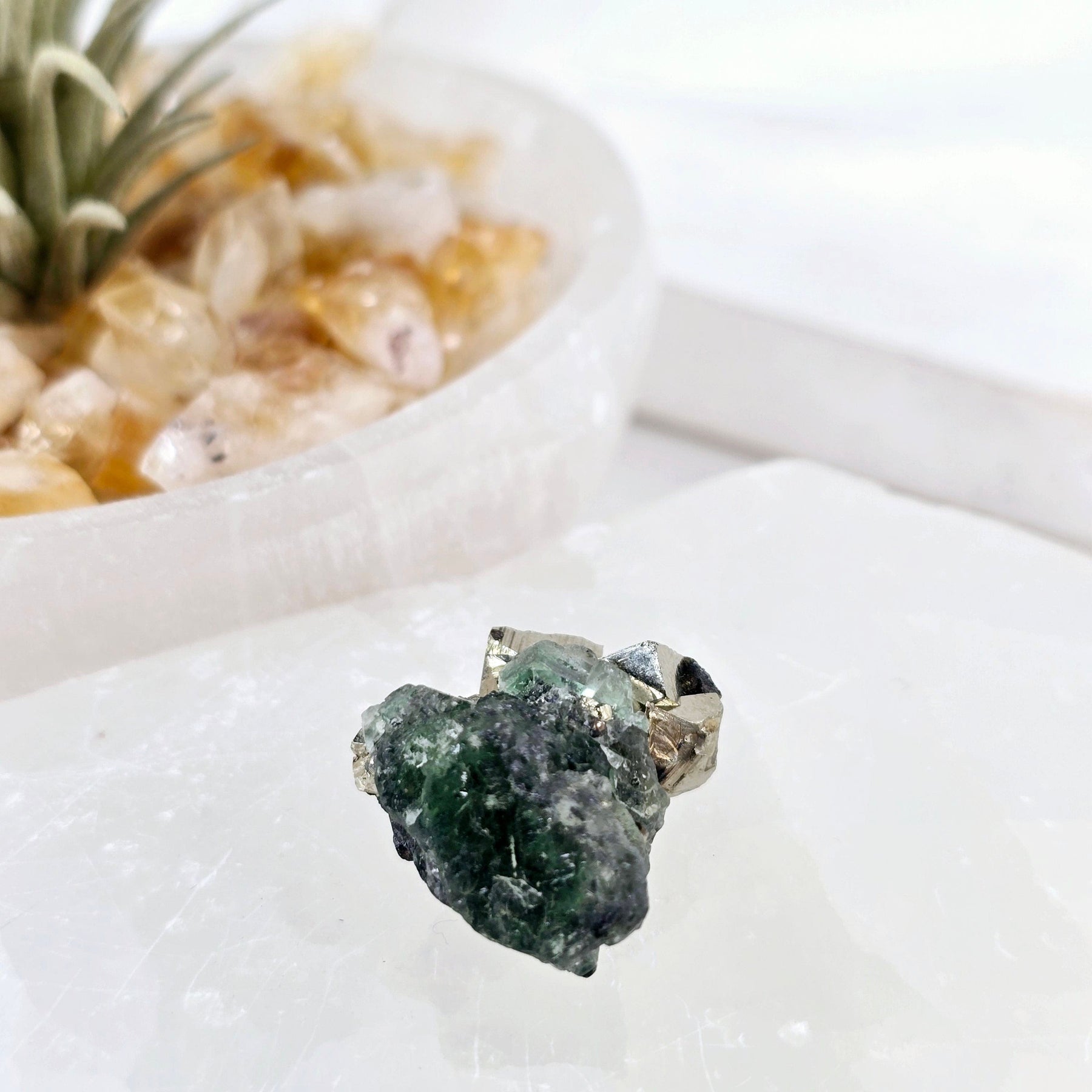 One of a Kind: You will receive this exact green fluorite with cubic pyrite as pictured.