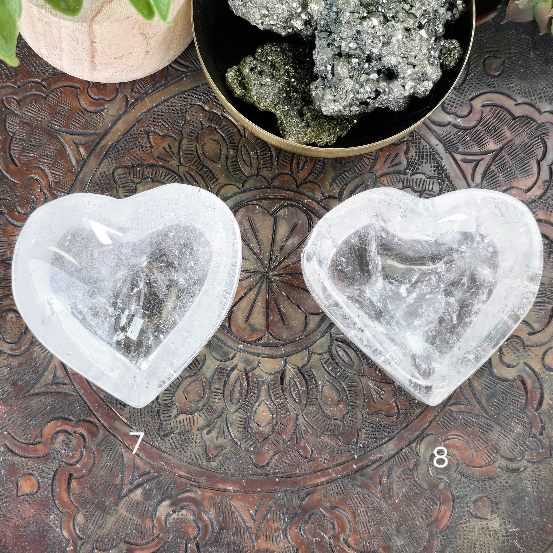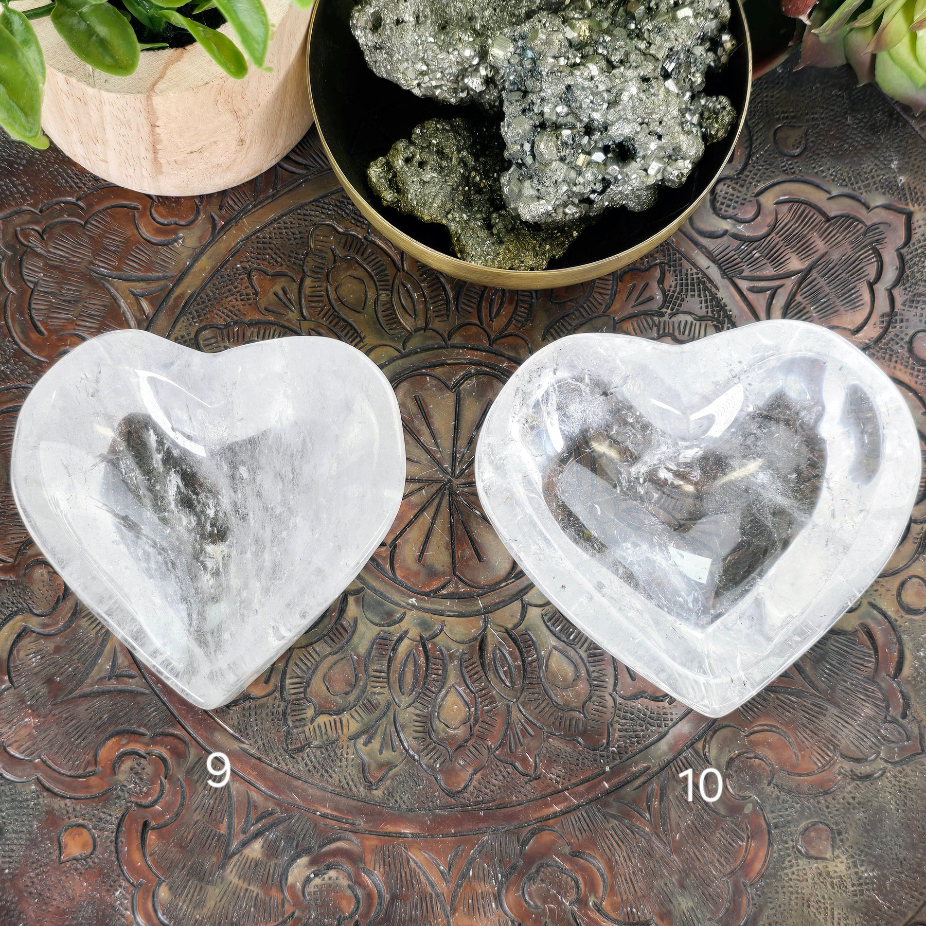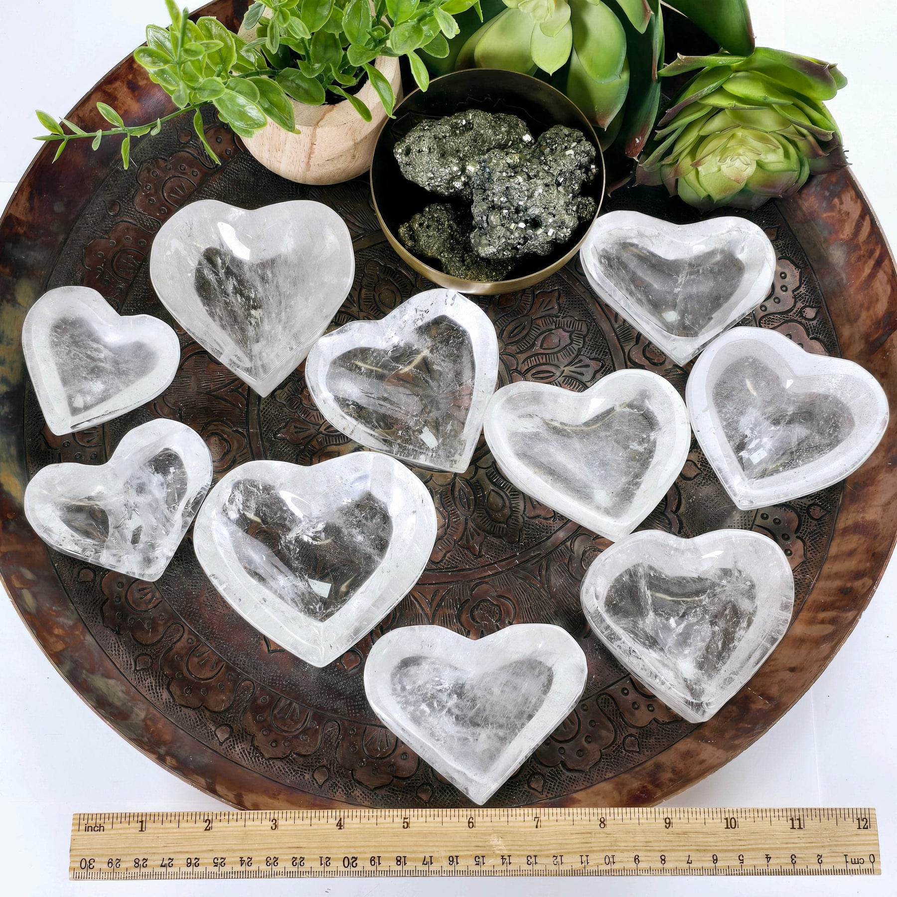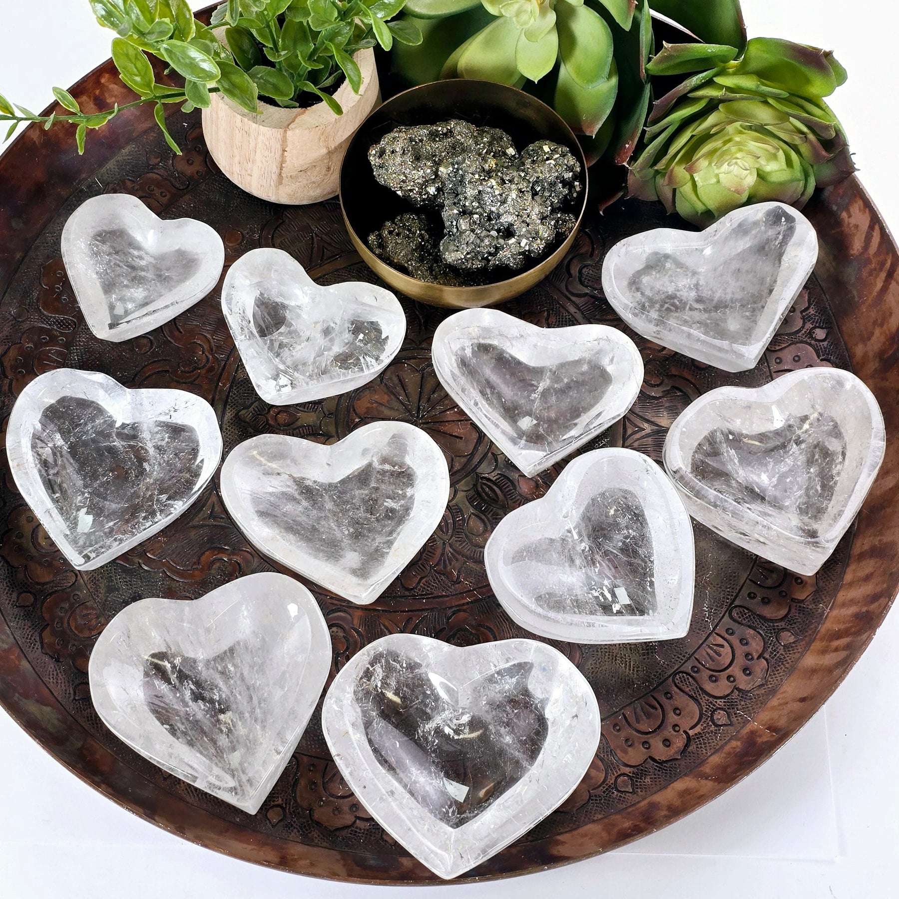 Beautiful crystal quartz heart dishes are perfect for holding jewelry and other small items. Each have beautiful clarity. These would make a great gift for a loved one.