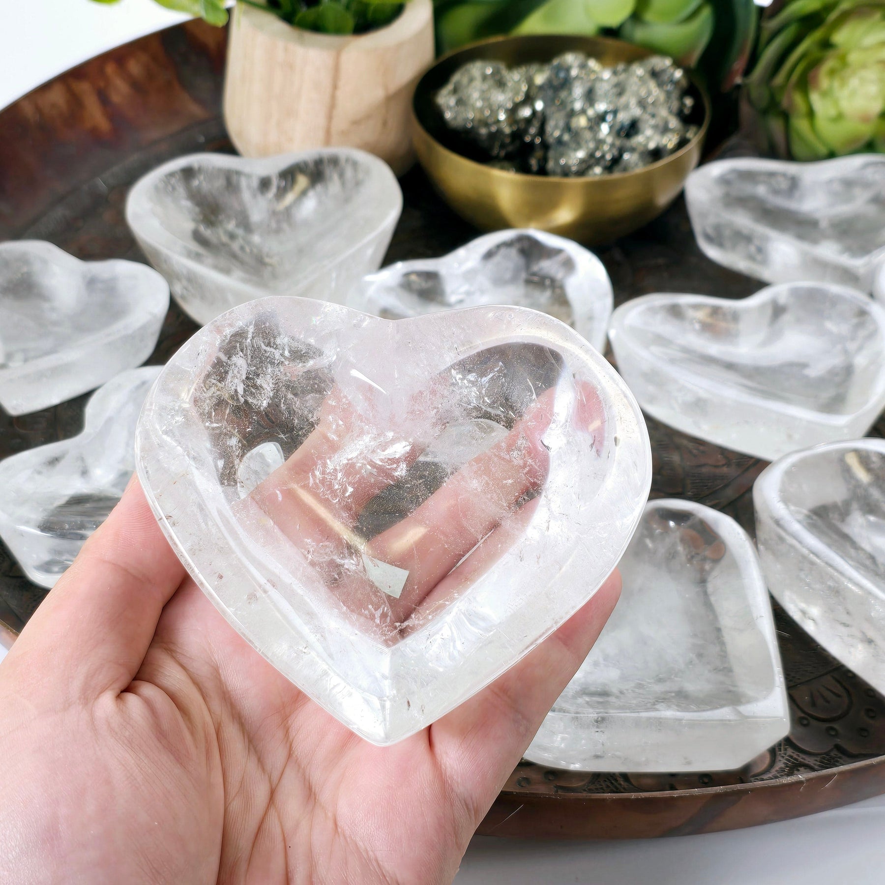 Carved and Polished: Each crystal quartz heart dish has been carved and polished by expert crystal artisans in Brazil. Each are uniquely shaped, beautiful and never the same.