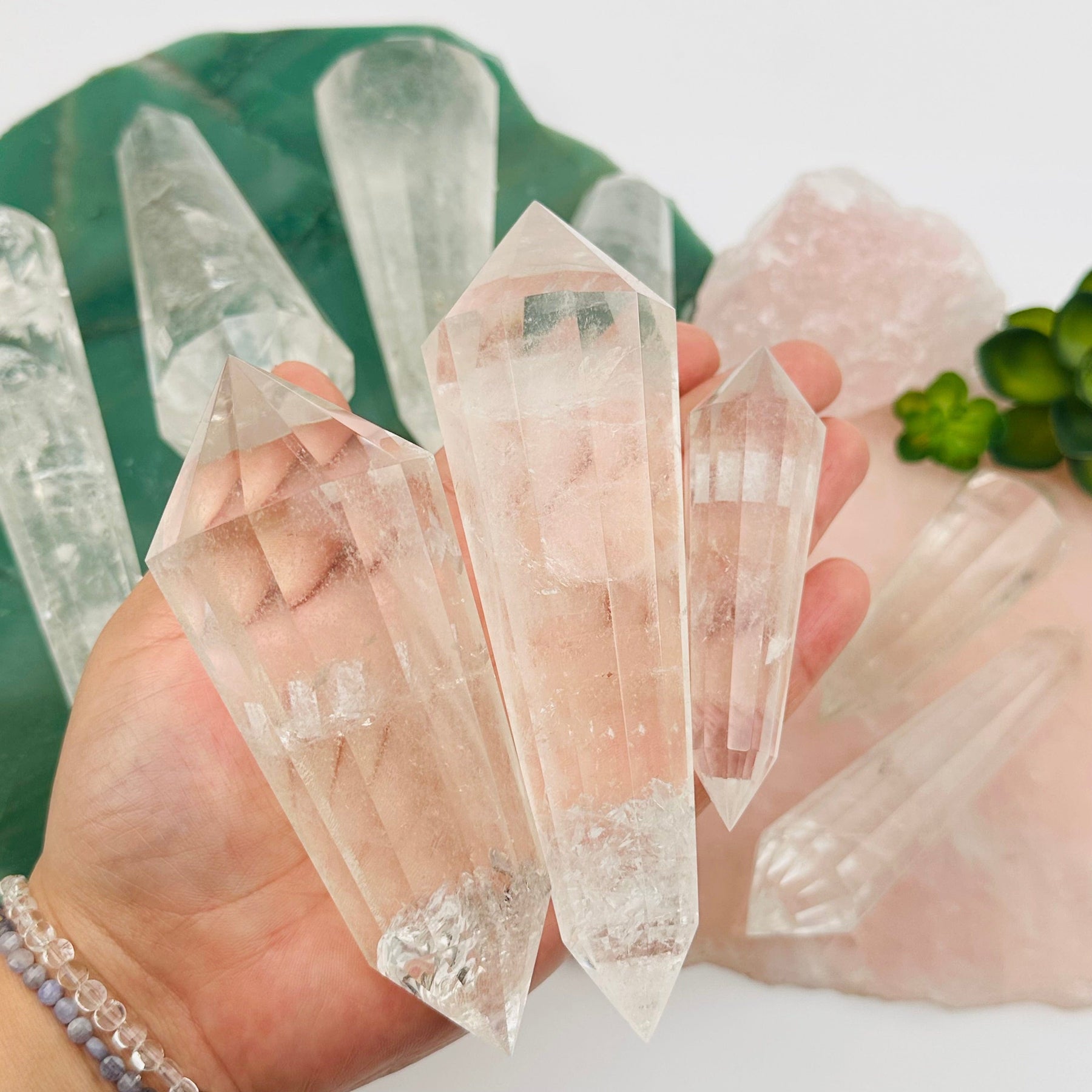 You’ll love Crystal Quartz Vogel Double Points because they are powerful energy tools designed for precision healing, manifestation, and spiritual transformation. Combining the amplifying energy of Clear Quartz with the precise cut of the Vogel shape, these crystals channel energy with extraordinary focus and intention.