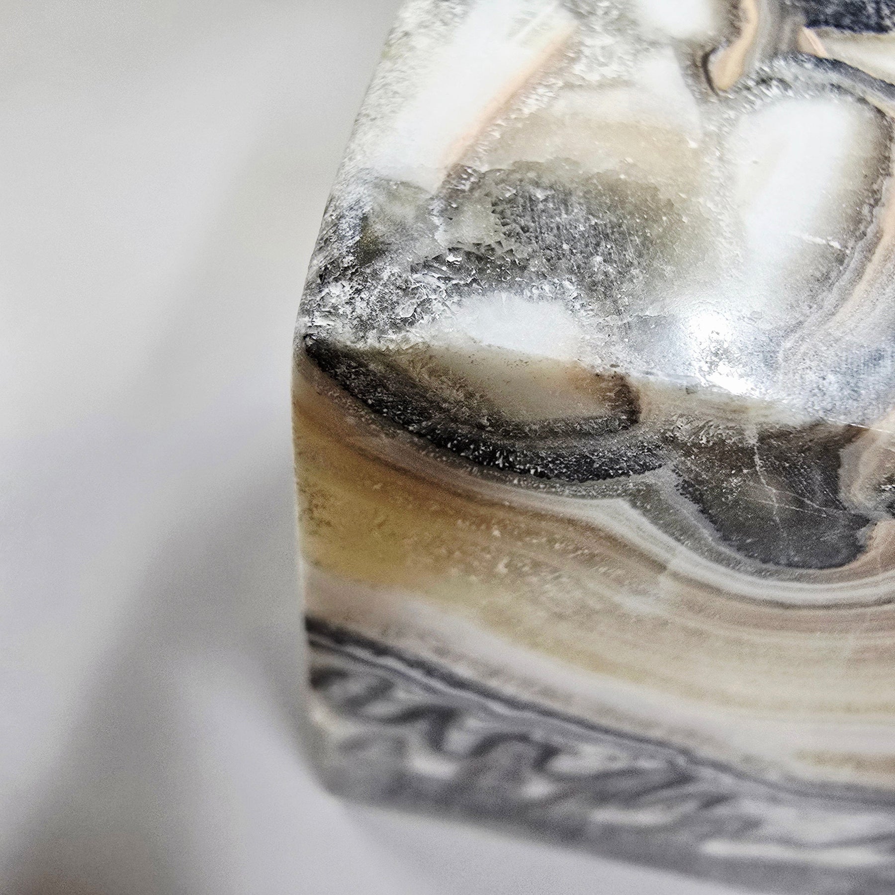 Mexican Onyx has layered bands of light-colored minerals. Many call slabs of onyx banded calcite. Light-colored Onyx reflects the color of purity, cleanliness and innocence. Light-colored Onyx is thought to stimulate the higher chakras and help enhance our dreams.