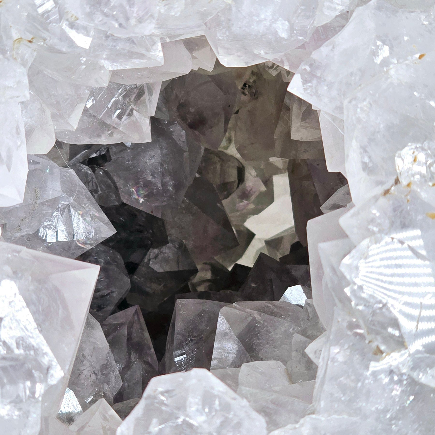 This large light amethyst crystal sphere will capture everyone's attention. The crystal can help bring positive energy into any room while also being a beautiful decoration.