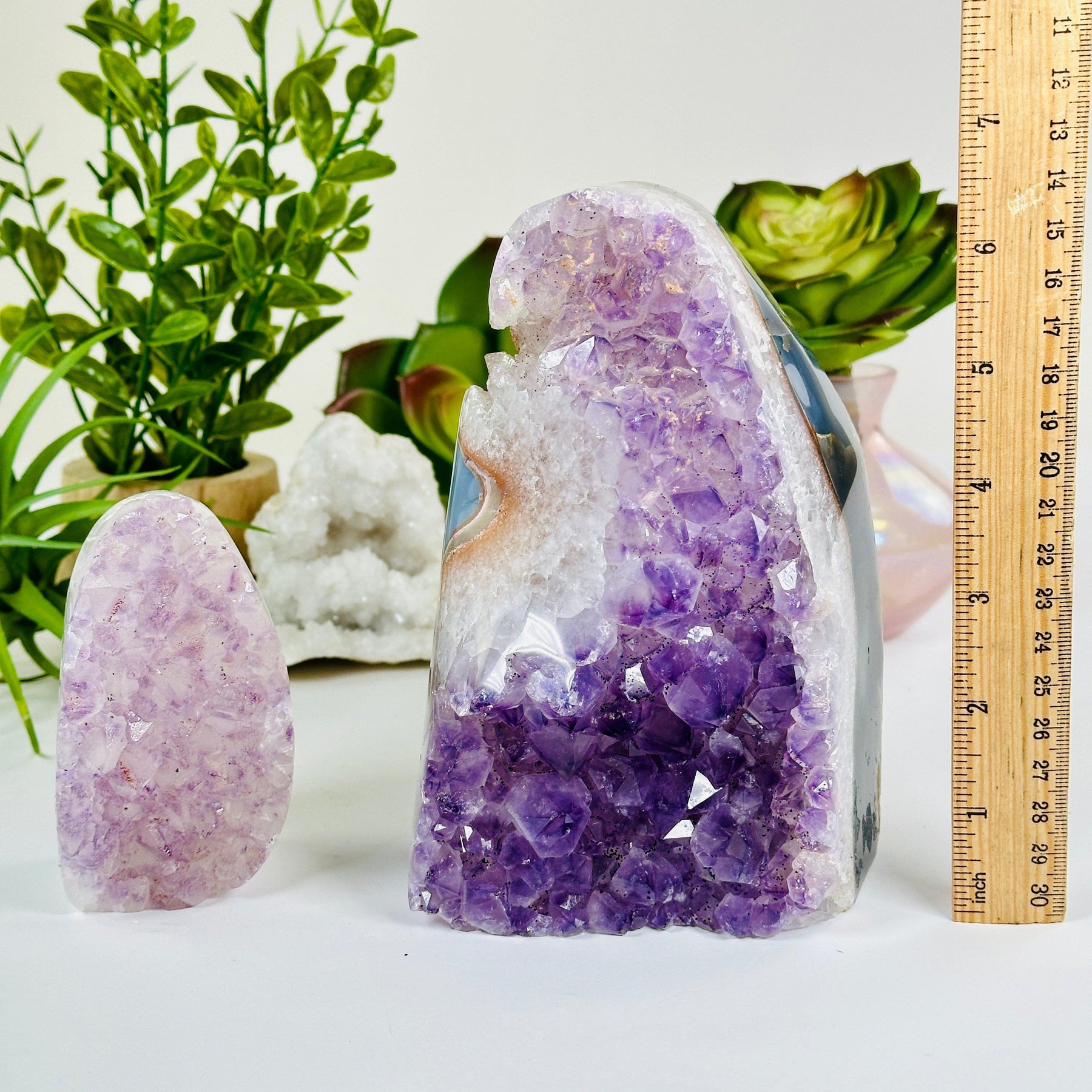 Amethyst Polished Crystal Cut Base - You Choose both variants with ruler for size reference