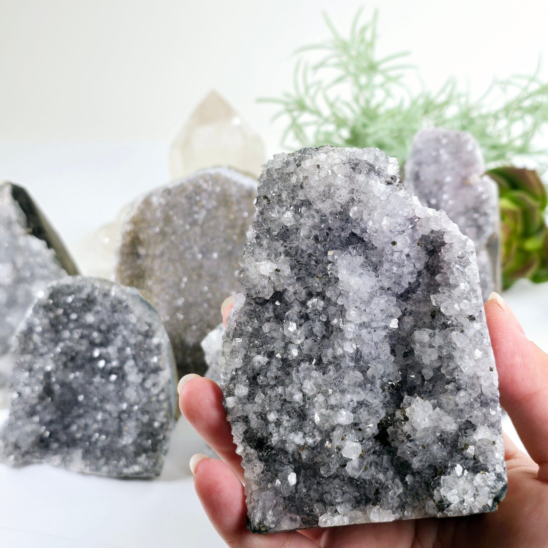 Gray Amethyst Druzy Cluster Crystal Cut Base - You Choose