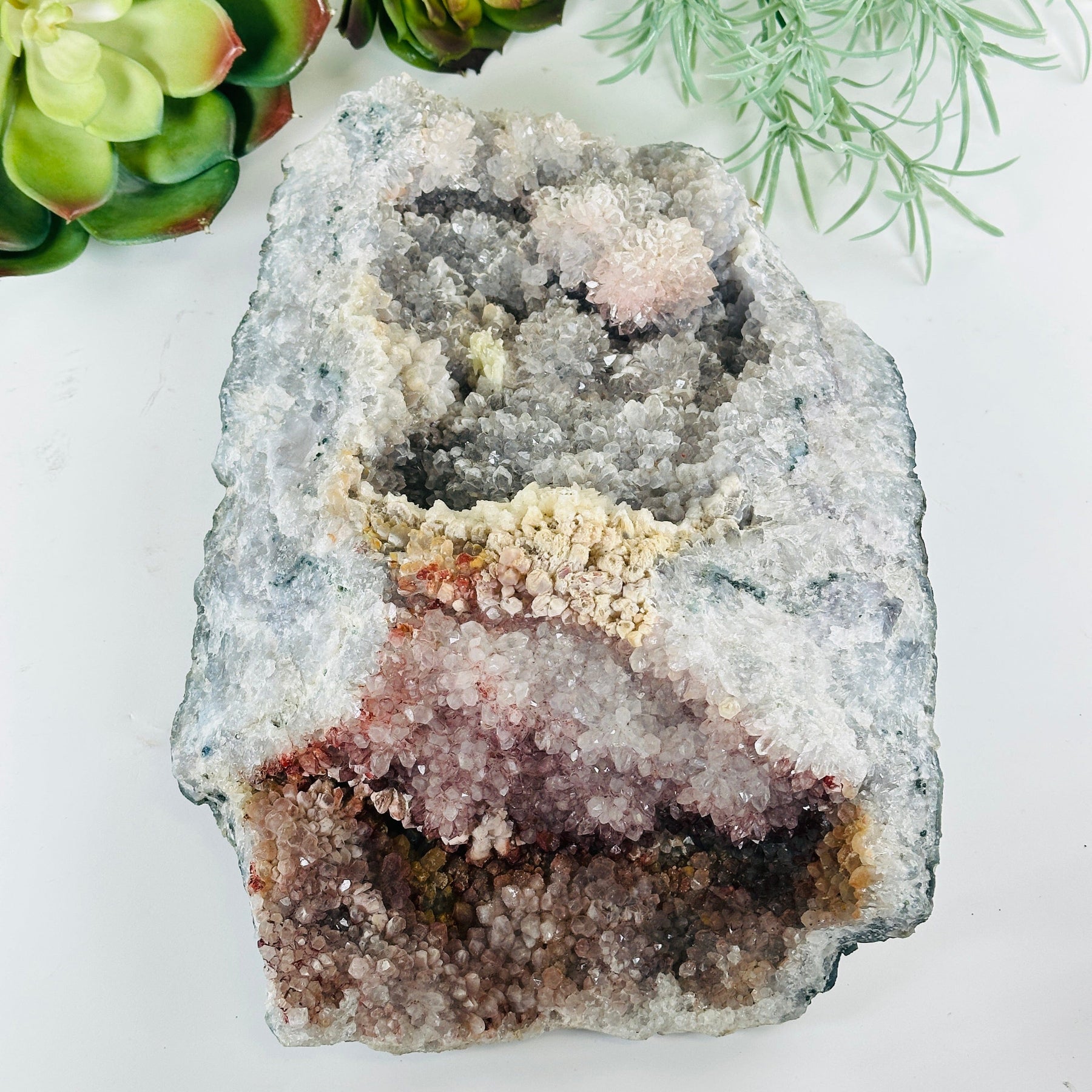 Listing is for ONE (1) Gray Amethyst Crystal Cluster with Hematite and Calcite. UOOAK-S21-01