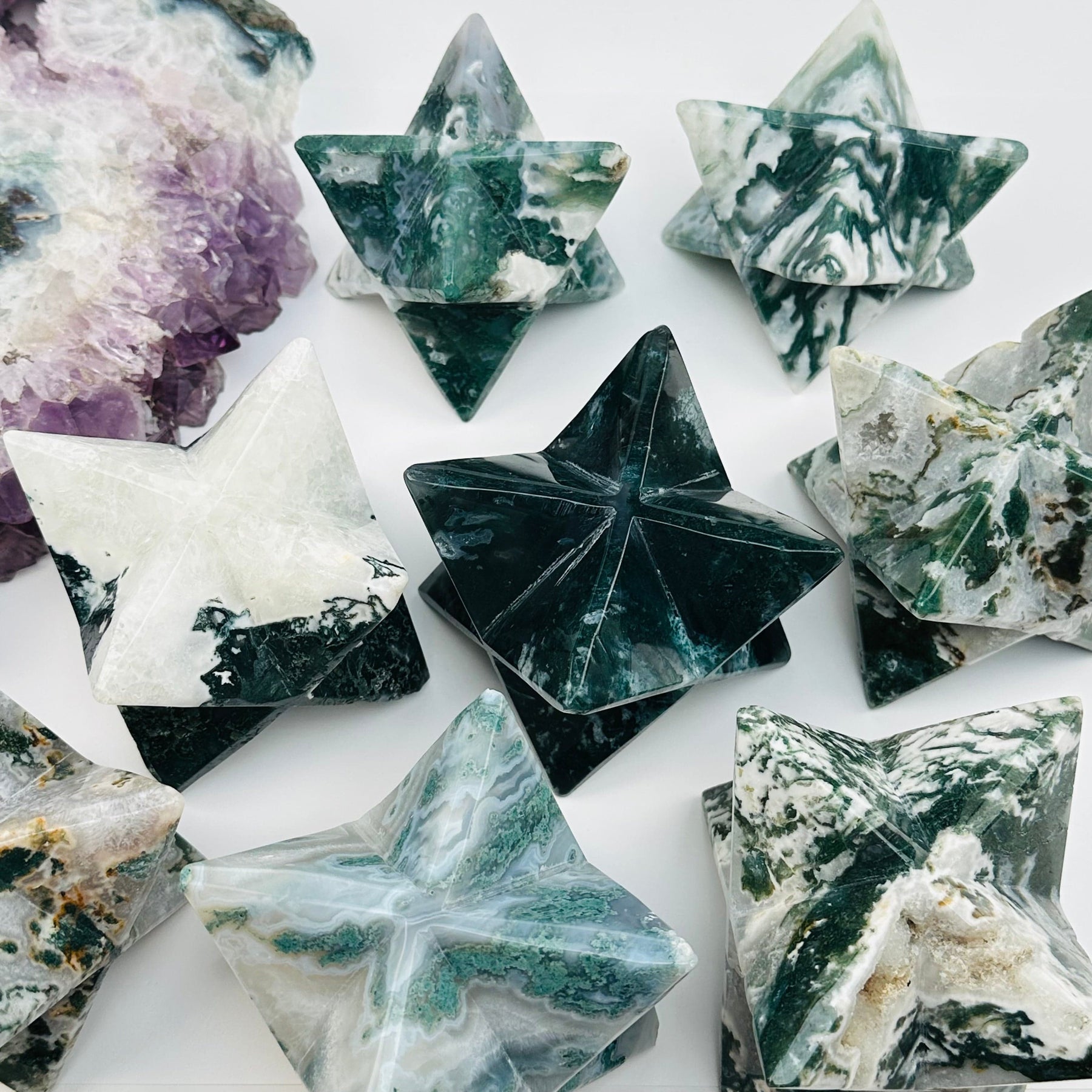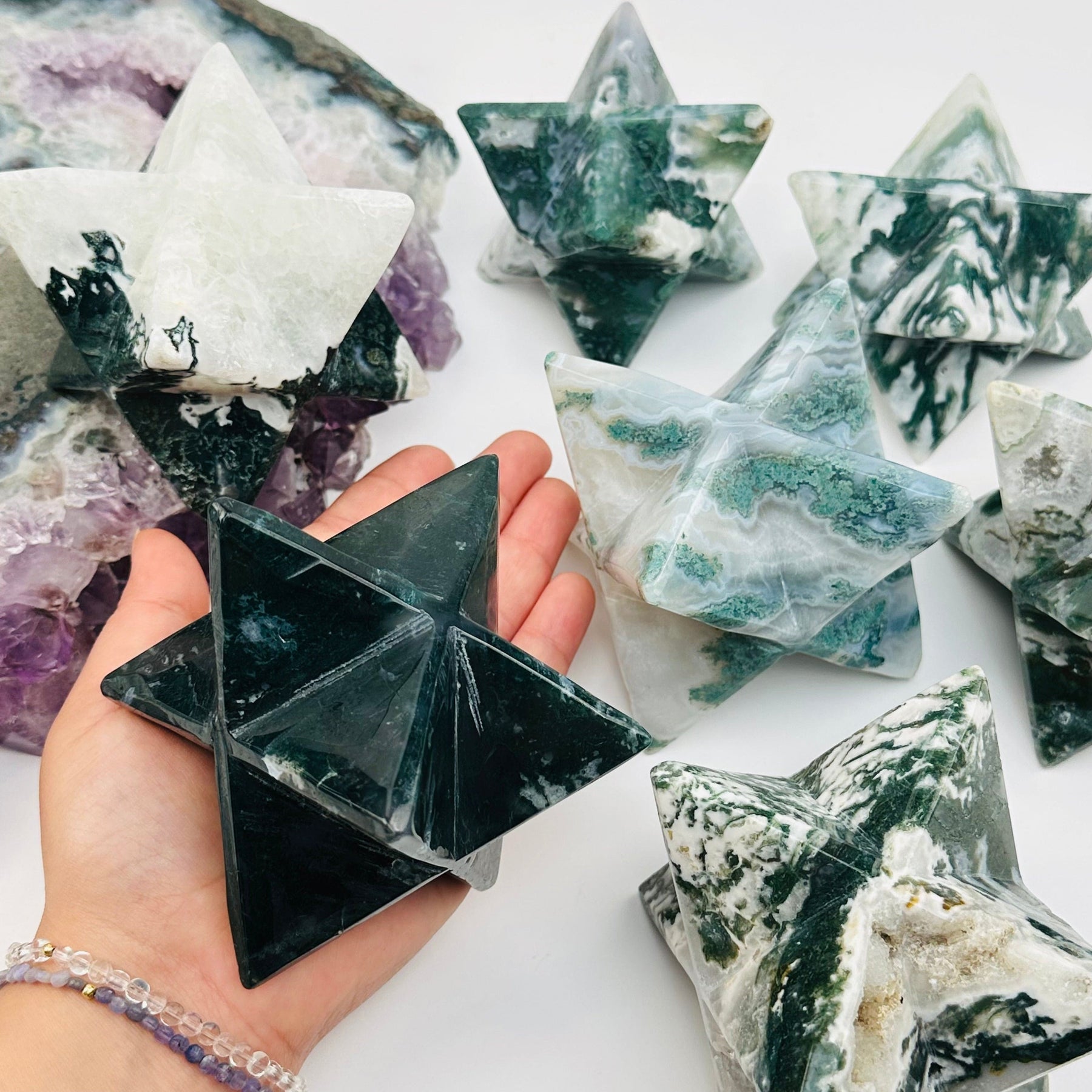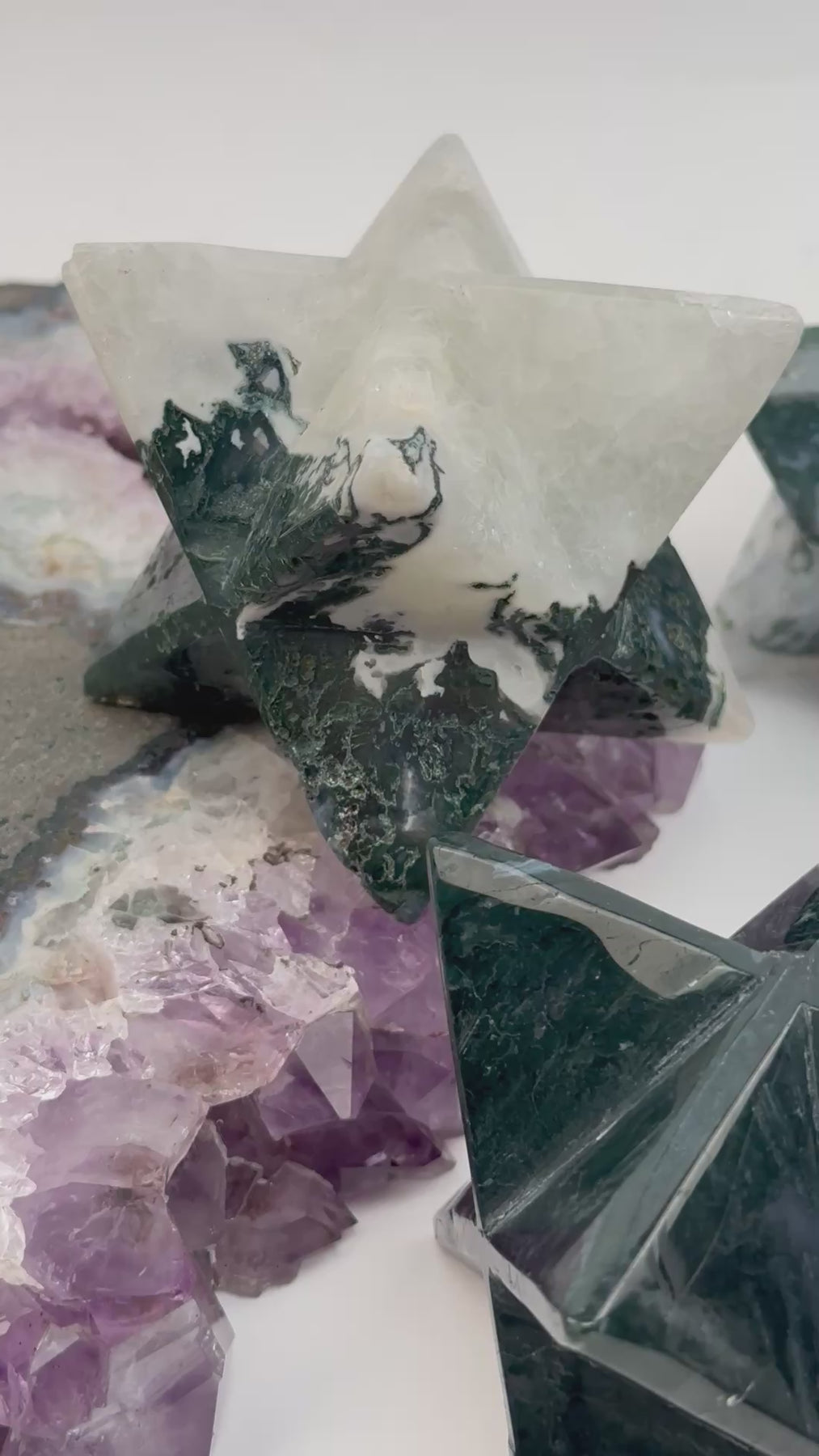 Content: 1 (One) - Moss Agate Crystal Merkabah Star - By weight -