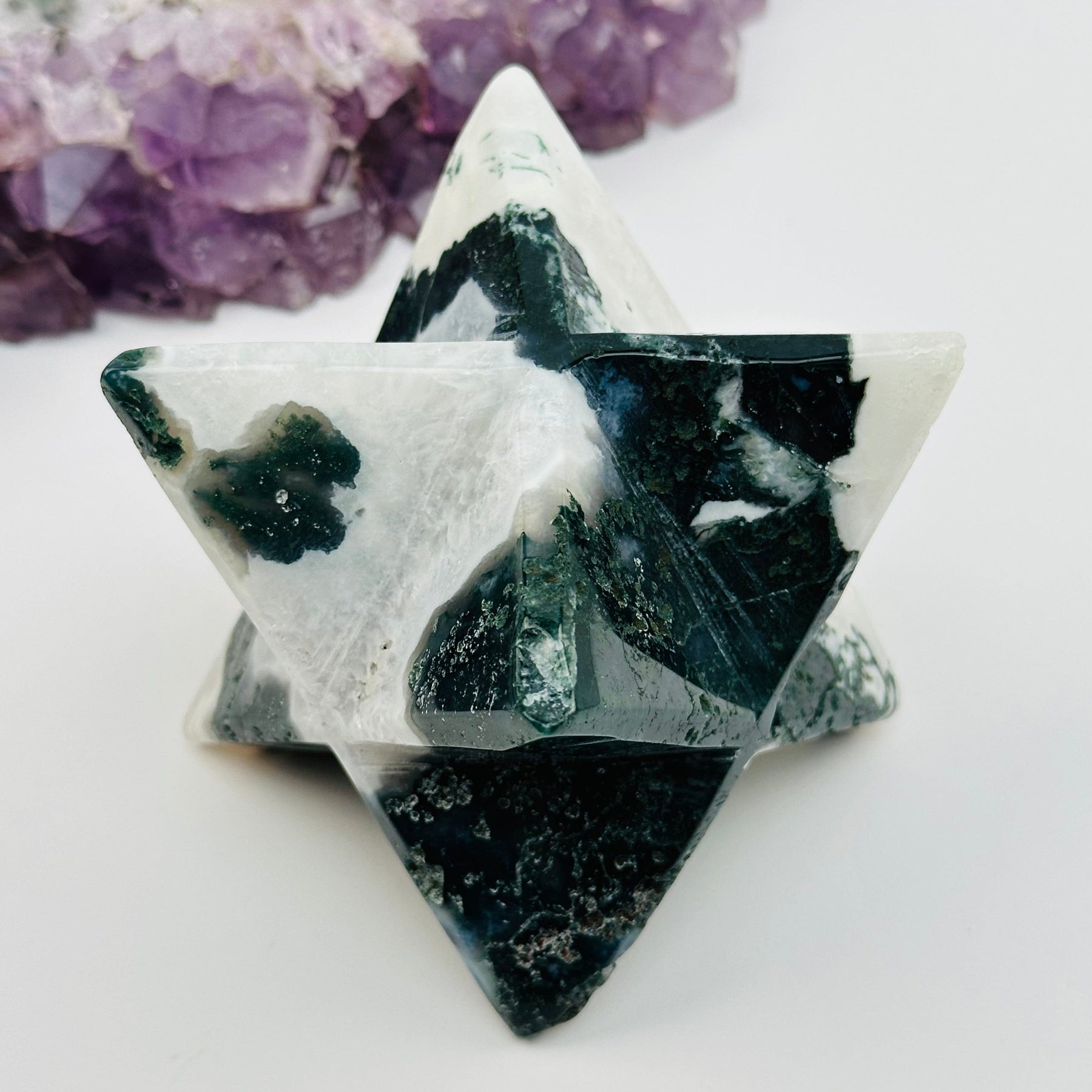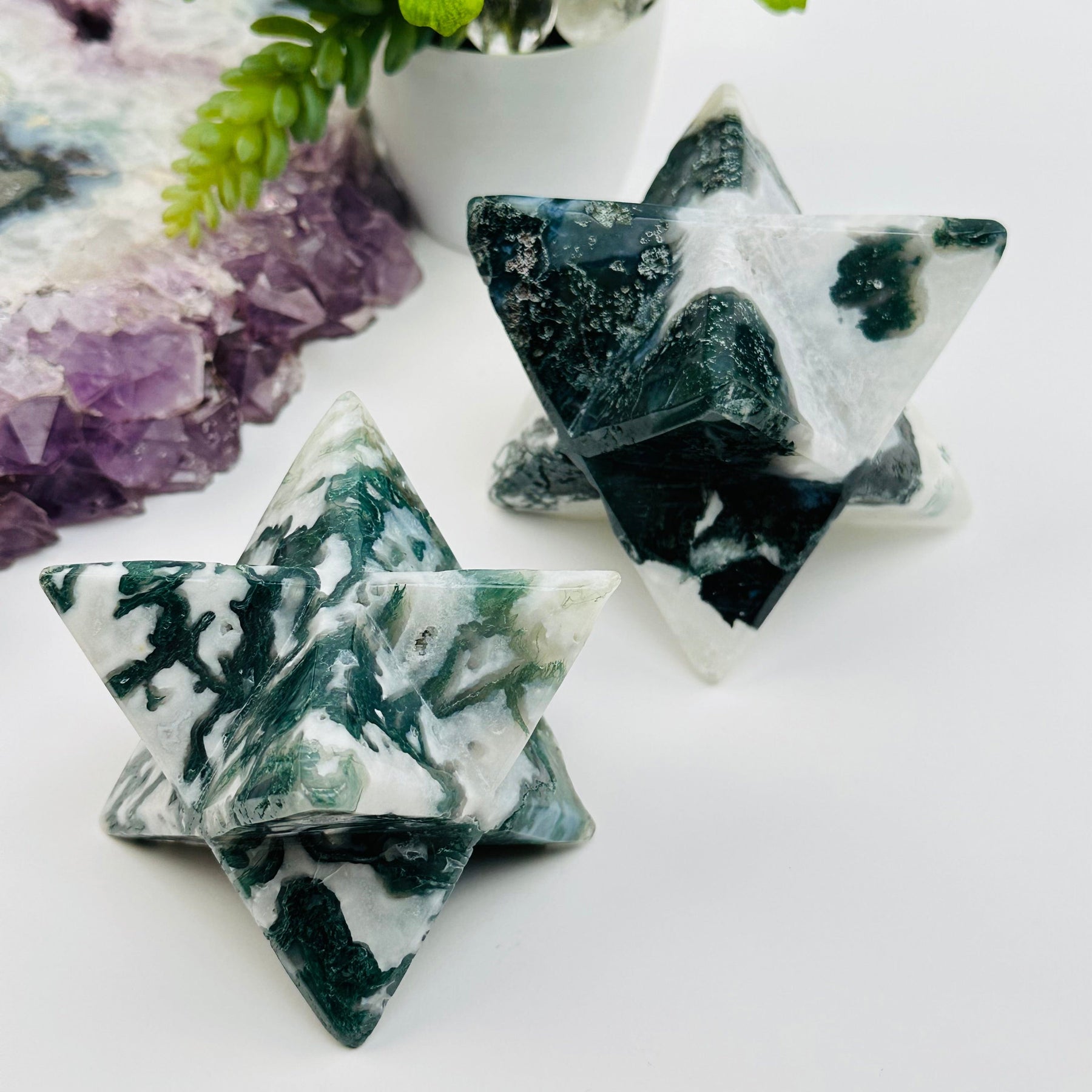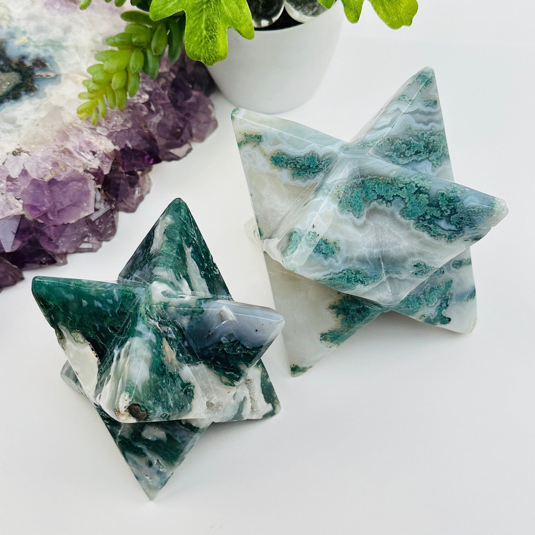 Content: 1 (One) - Moss Agate Crystal Merkabah Star - By weight -