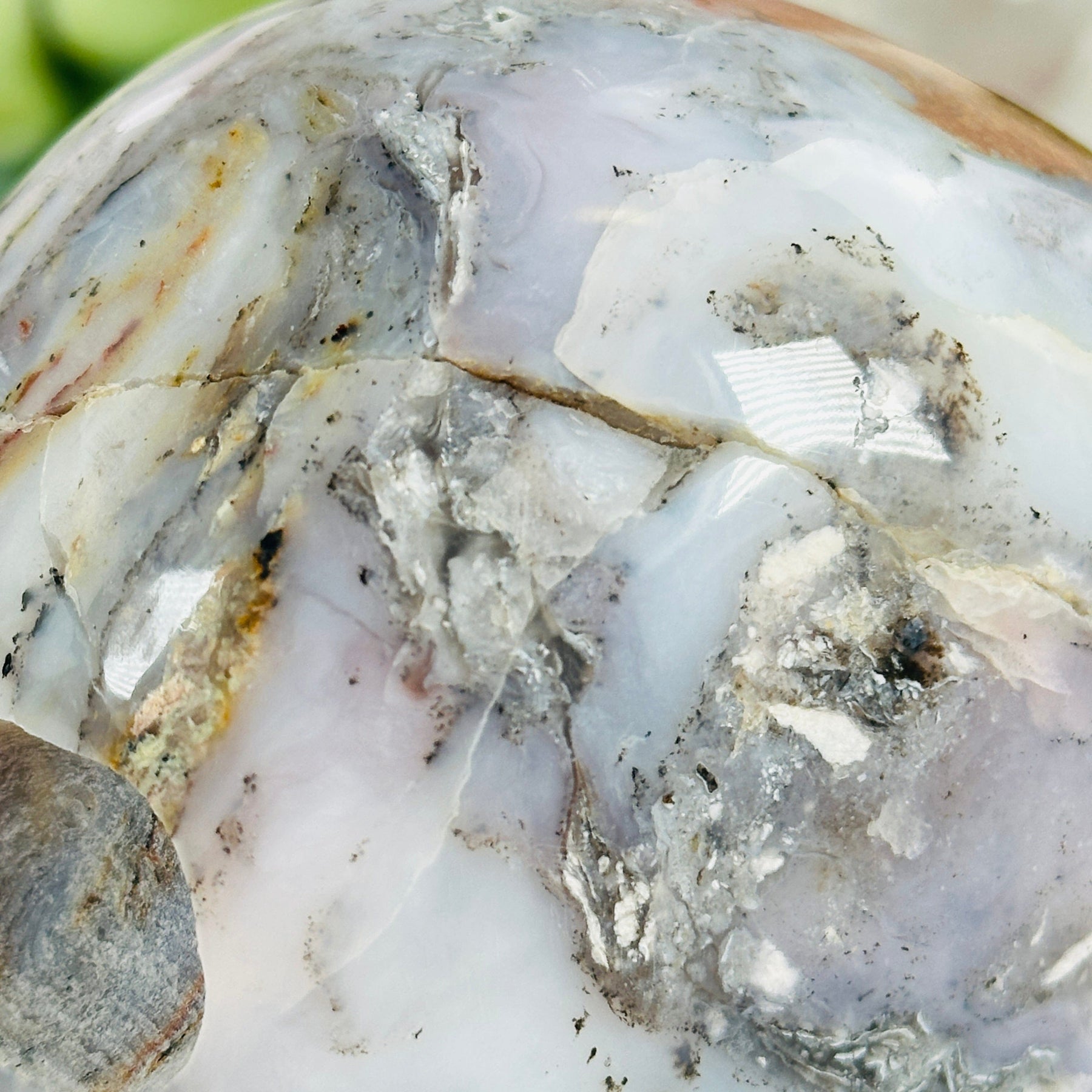 Pink Opal is a variety of common opal known for its soothing pink color. This pink opal skull has beautiful features and symbolizes transformation, love and healing.