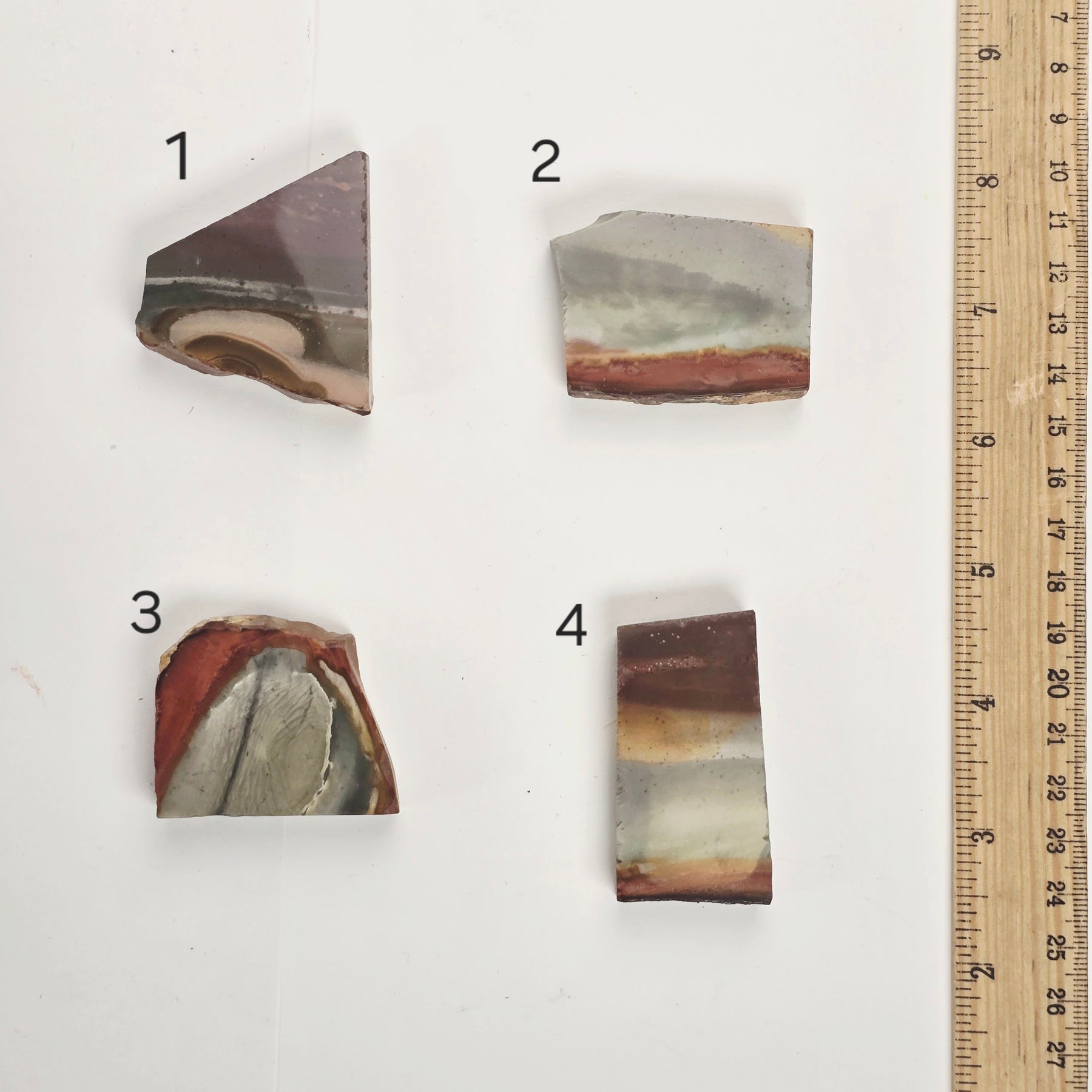 Beautiful Polychrome Jasper, also known as Desert Jasper or Picasso Jasper, is showcased in beautiful small slabs that have been polished on one side. Polychrome jasper features multi-colored stone formations in colors that include deep red, golden yellow, grayish blue, white, brown, and more.