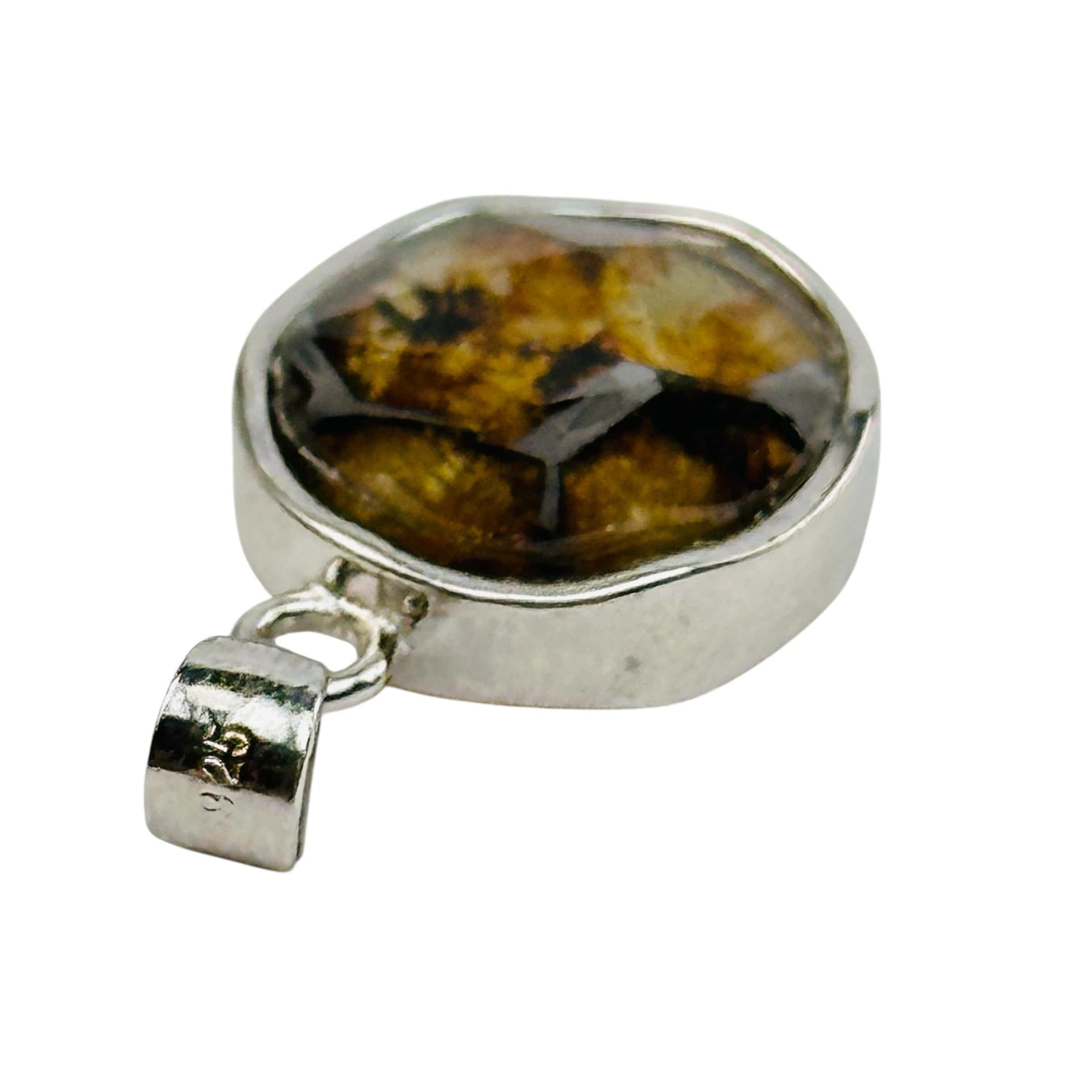 Sericho Pallasaite Meteorite Crystal Silver Pendant