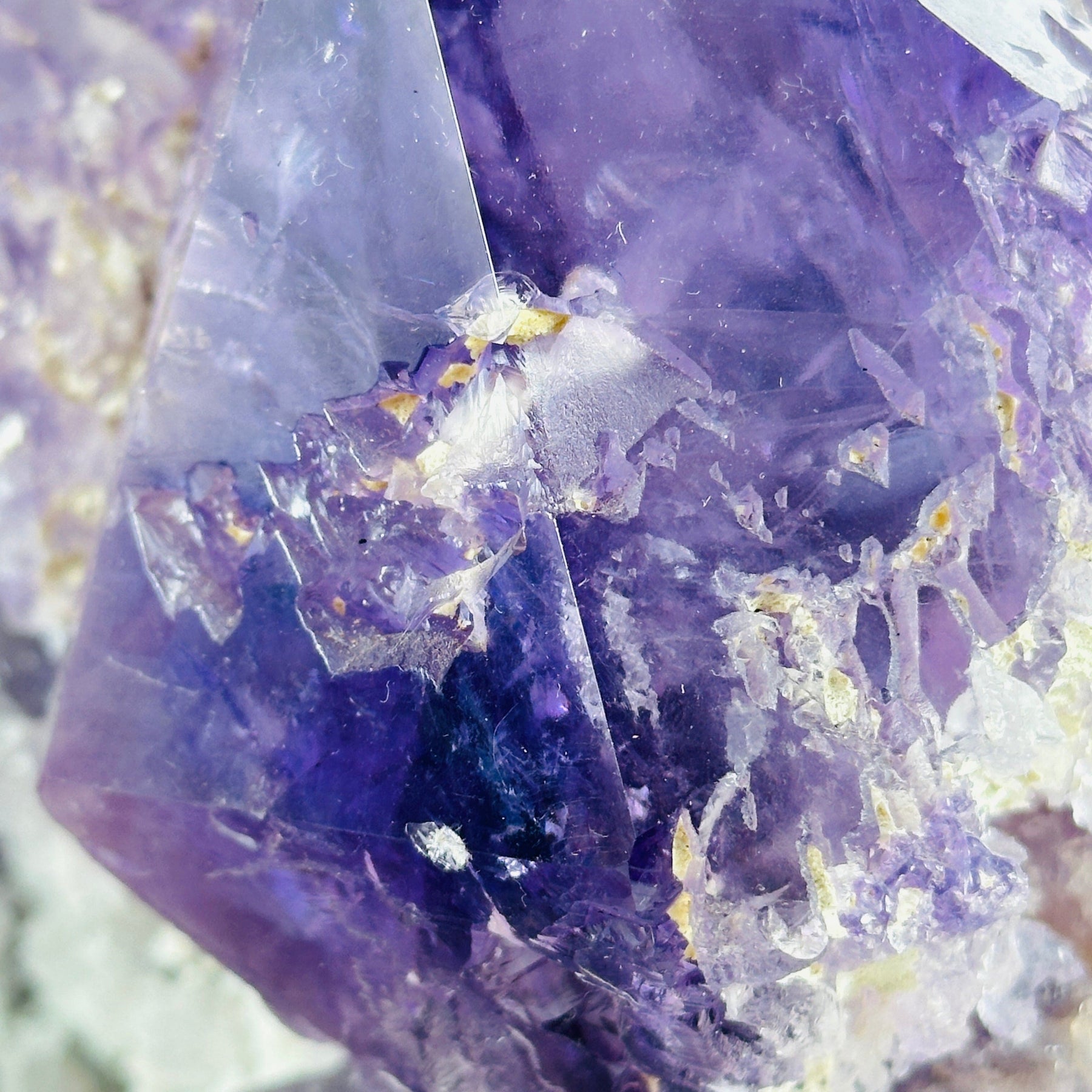Metaphysical Properties: Known for its ability to calm the mind, promote meditation, and enhance spiritual growth, as well as offering protection during travel and aiding in connecting with spirit guides, elestial amethyst is believed to help with releasing negative energy, breaking harmful habits, and even aiding in the release of spirits.