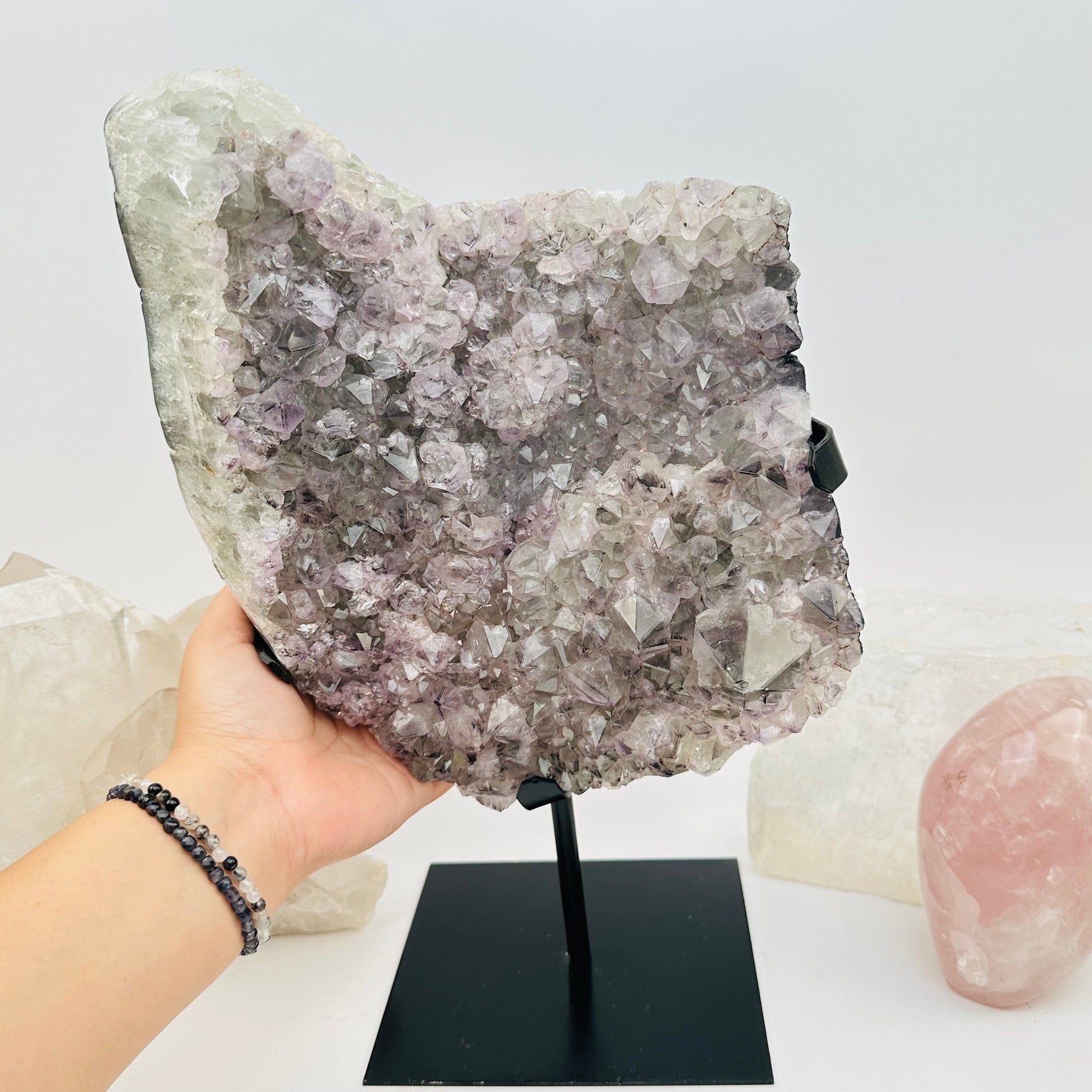 Content: Amethyst Crystal cluster on Metal Stand - This is a One of a Kind item. you will receive the exact crystal as pictured.