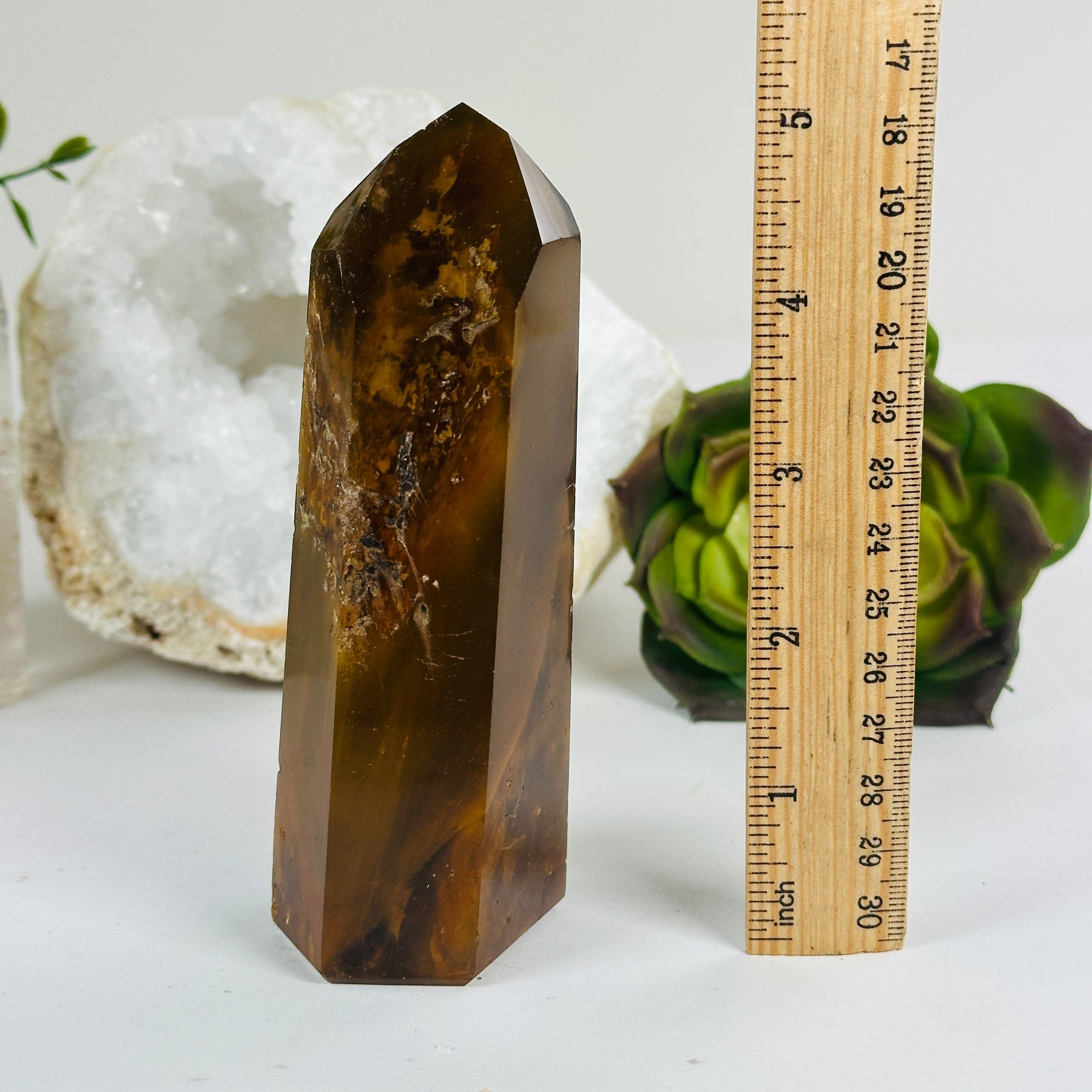 Amphibole Quartz Polished Crystal Point - One-of-a-Kind with ruler for size reference