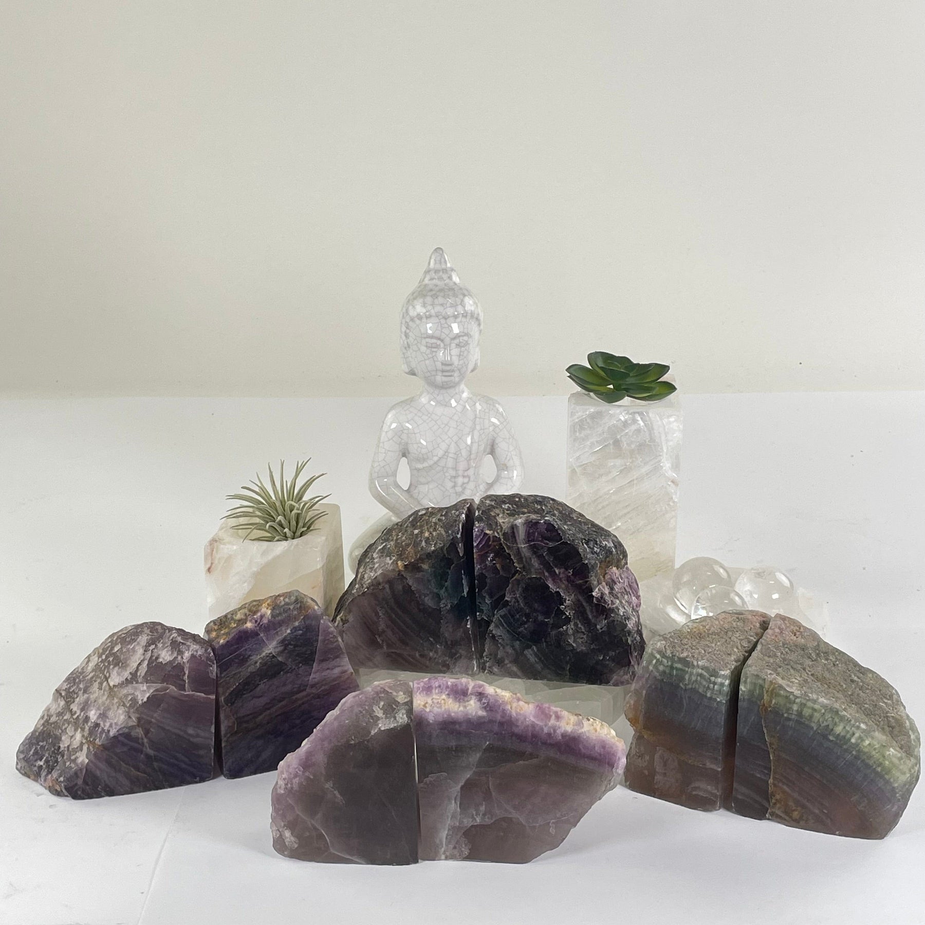 Hand-Crafted: Each fluorite bookend pair has been hand-carved and polished by expert crystal artisans in Brazil.