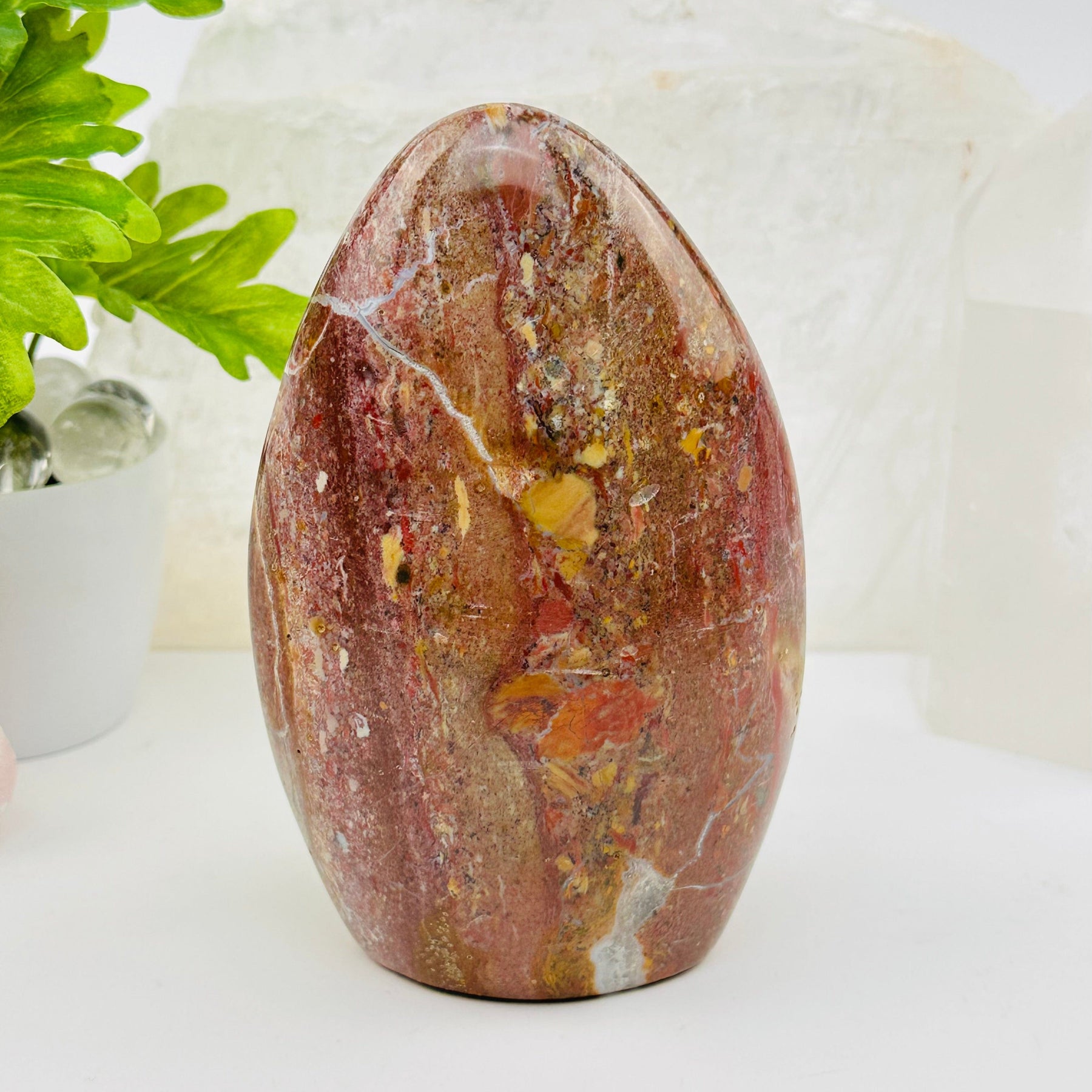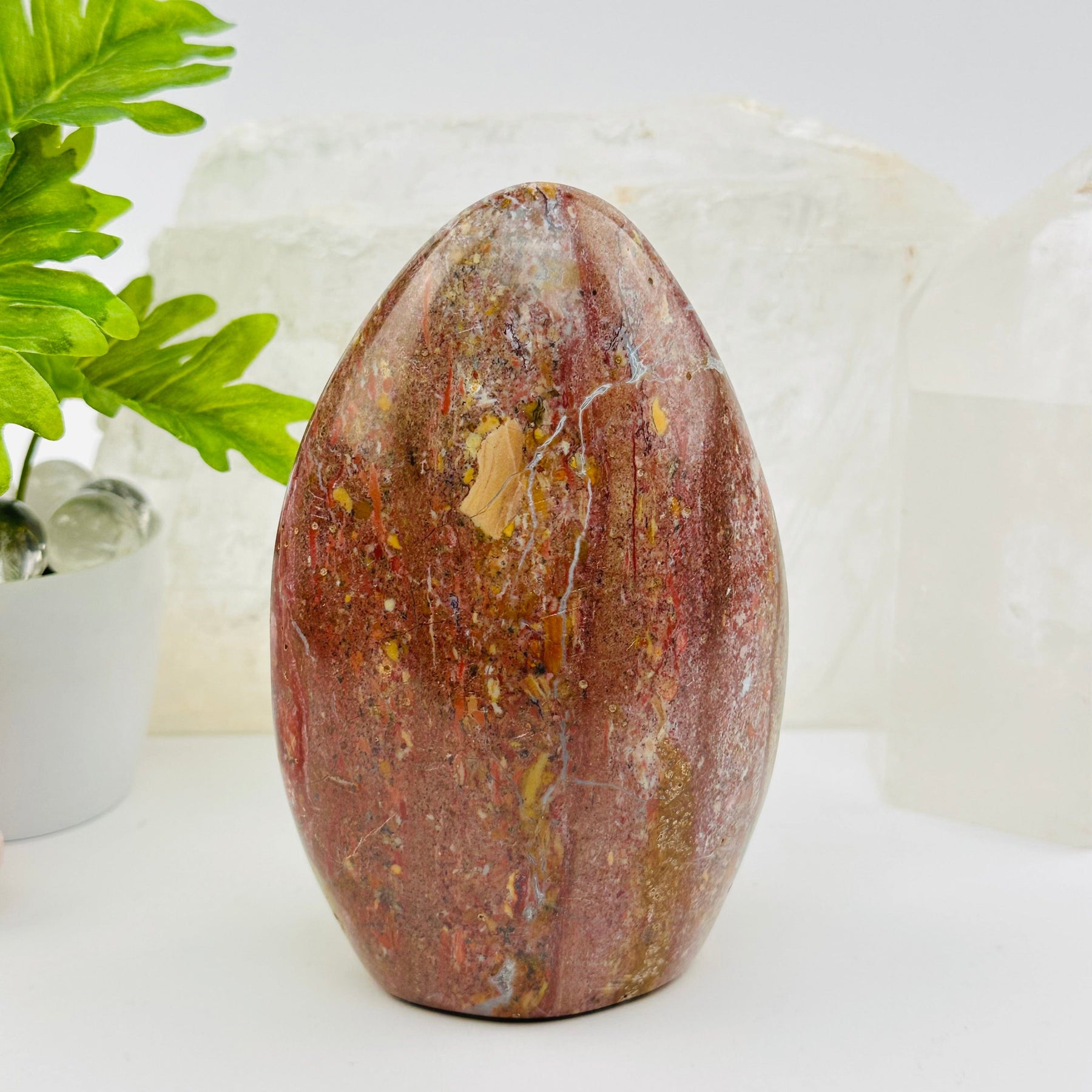 Known as the stone of joy, Ocean Jasper helps melt away stress and invites in peace, patience, and emotional renewal.