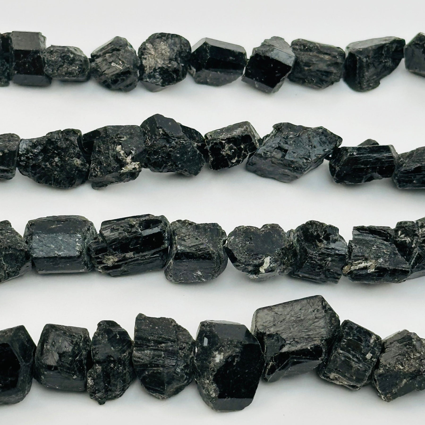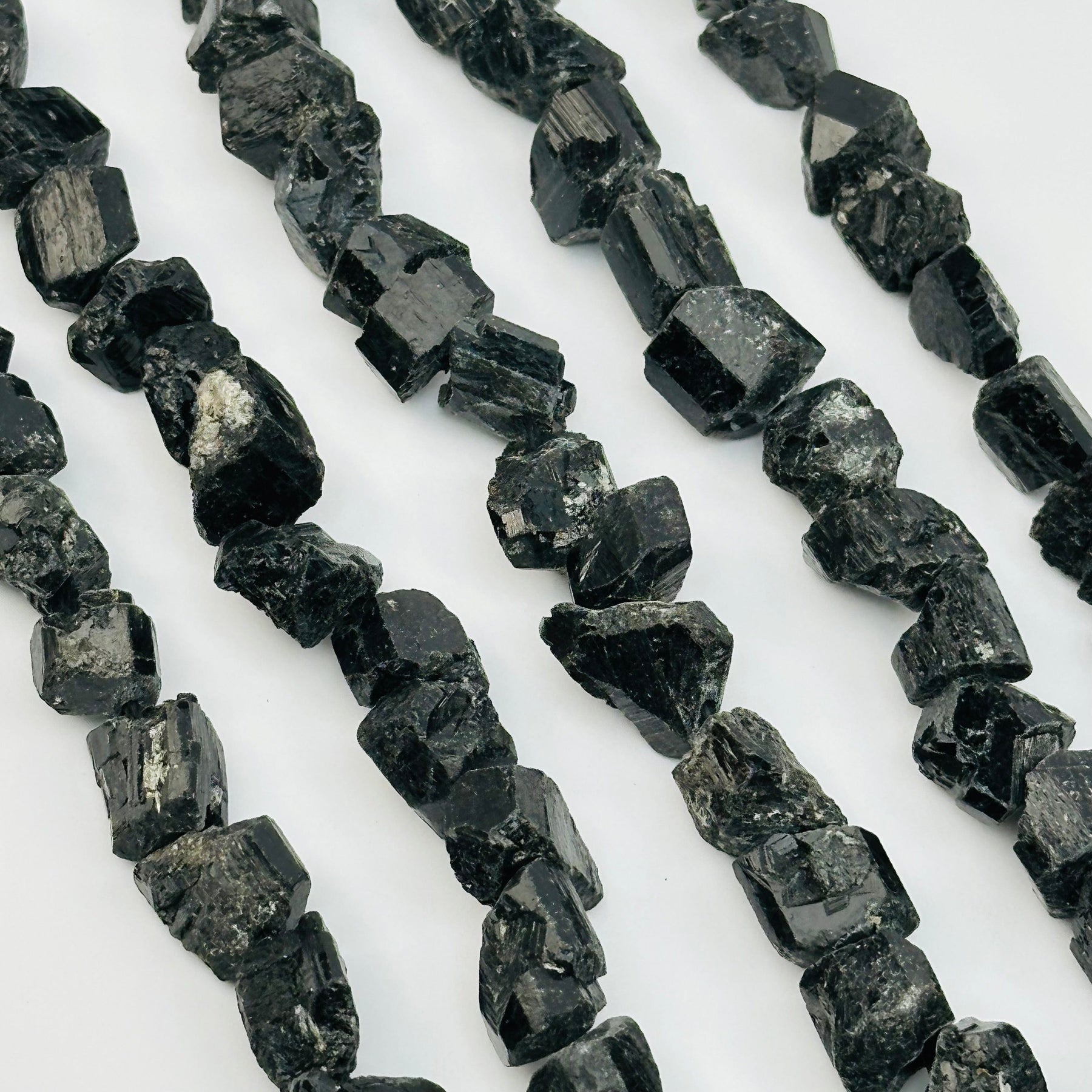 Black Tourmaline Rough Stone Crystal Bead Strand