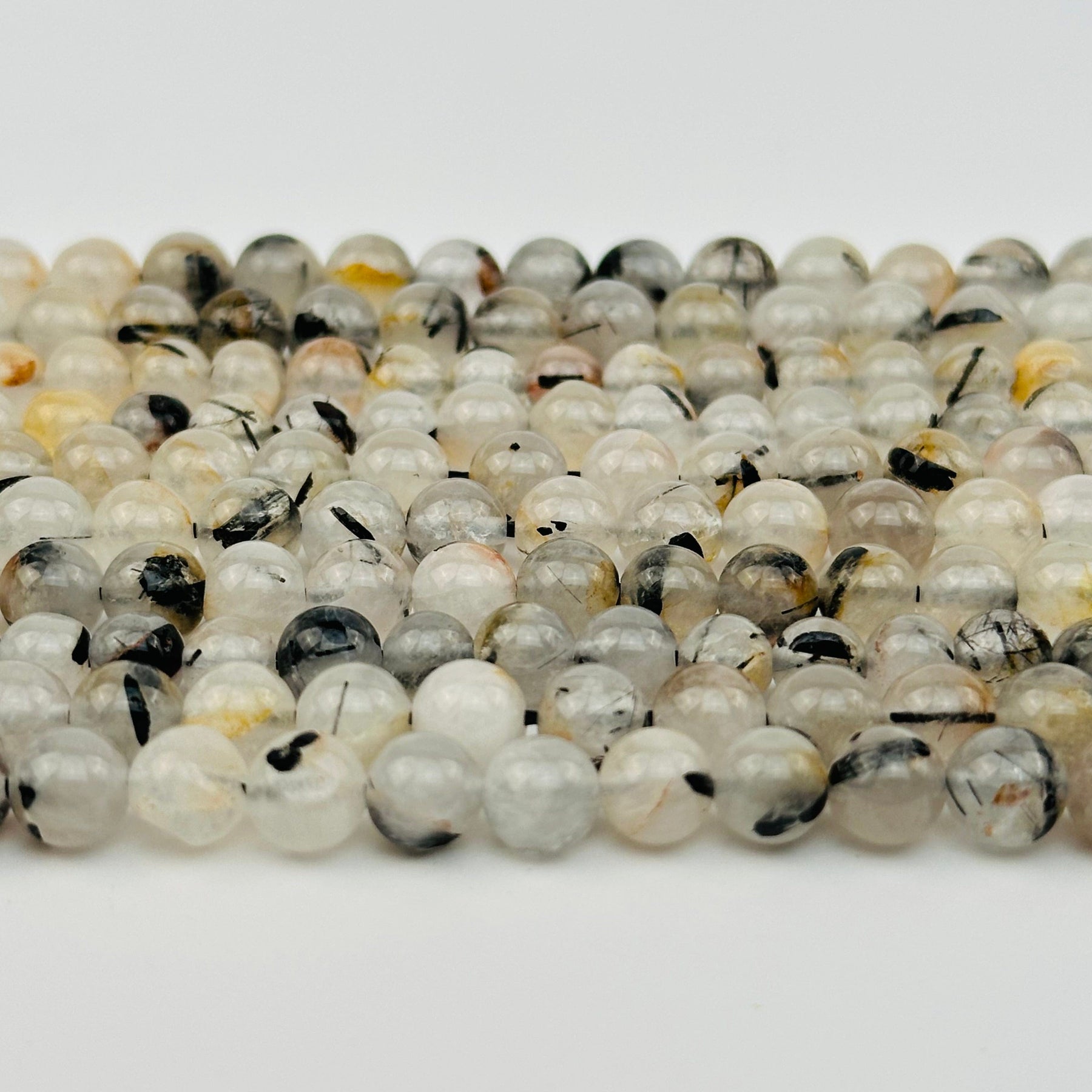 Discover beauty and protection with these 6mm Black Tourmaline Rutilated Quartz Round Beads. Each bead is a natural fusion of clear quartz infused with striking black tourmaline inclusions—making every piece uniquely captivating.