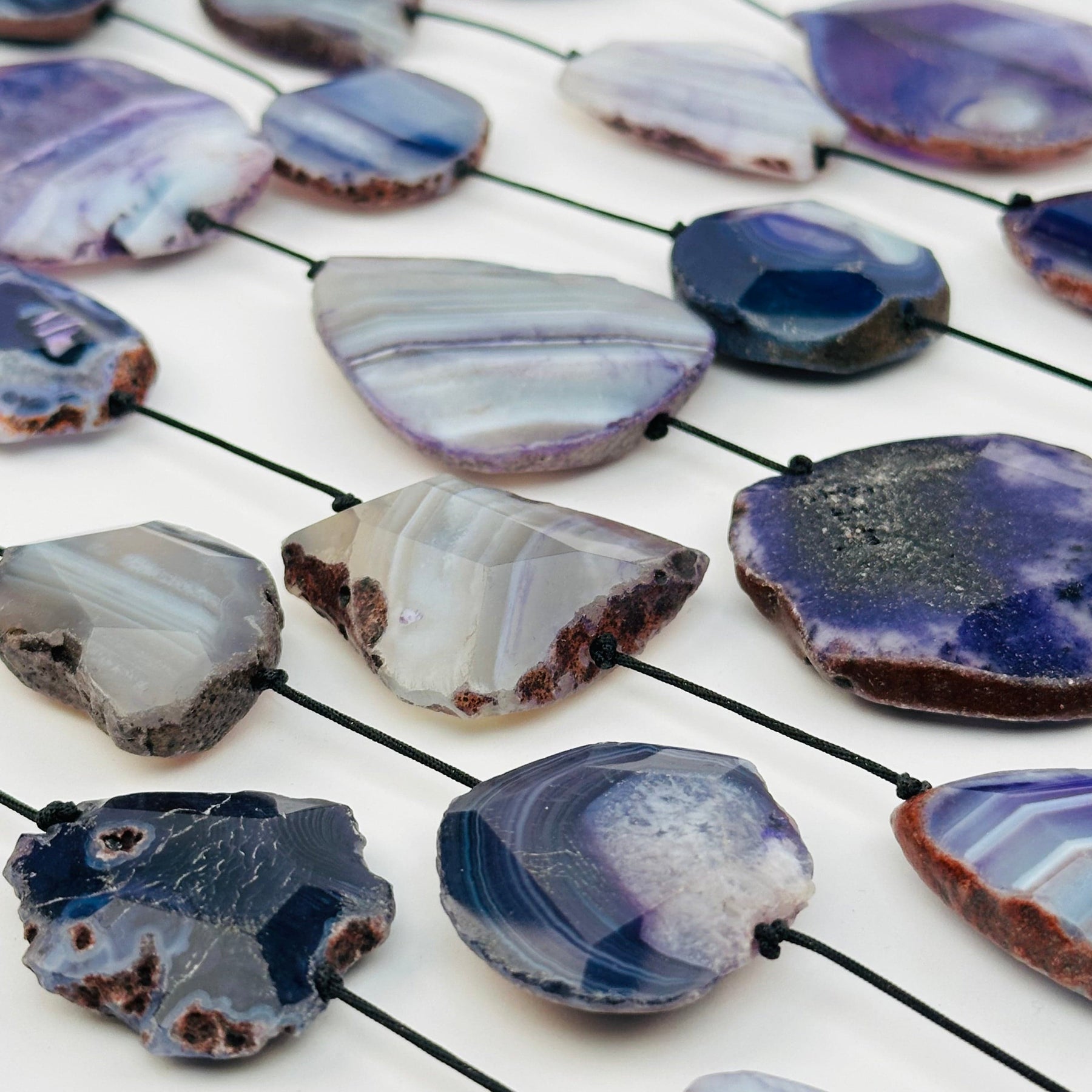 Beyond its metaphysical properties, a Purple Agate bead strand showcases stunning hues ranging from deep violet to soft lavender, often with unique banding patterns.This makes it a versatile addition to various jewelry designs, adding a touch of elegance and individuality.