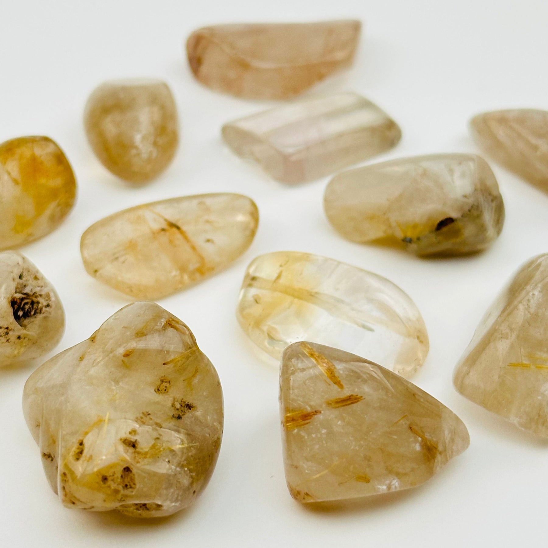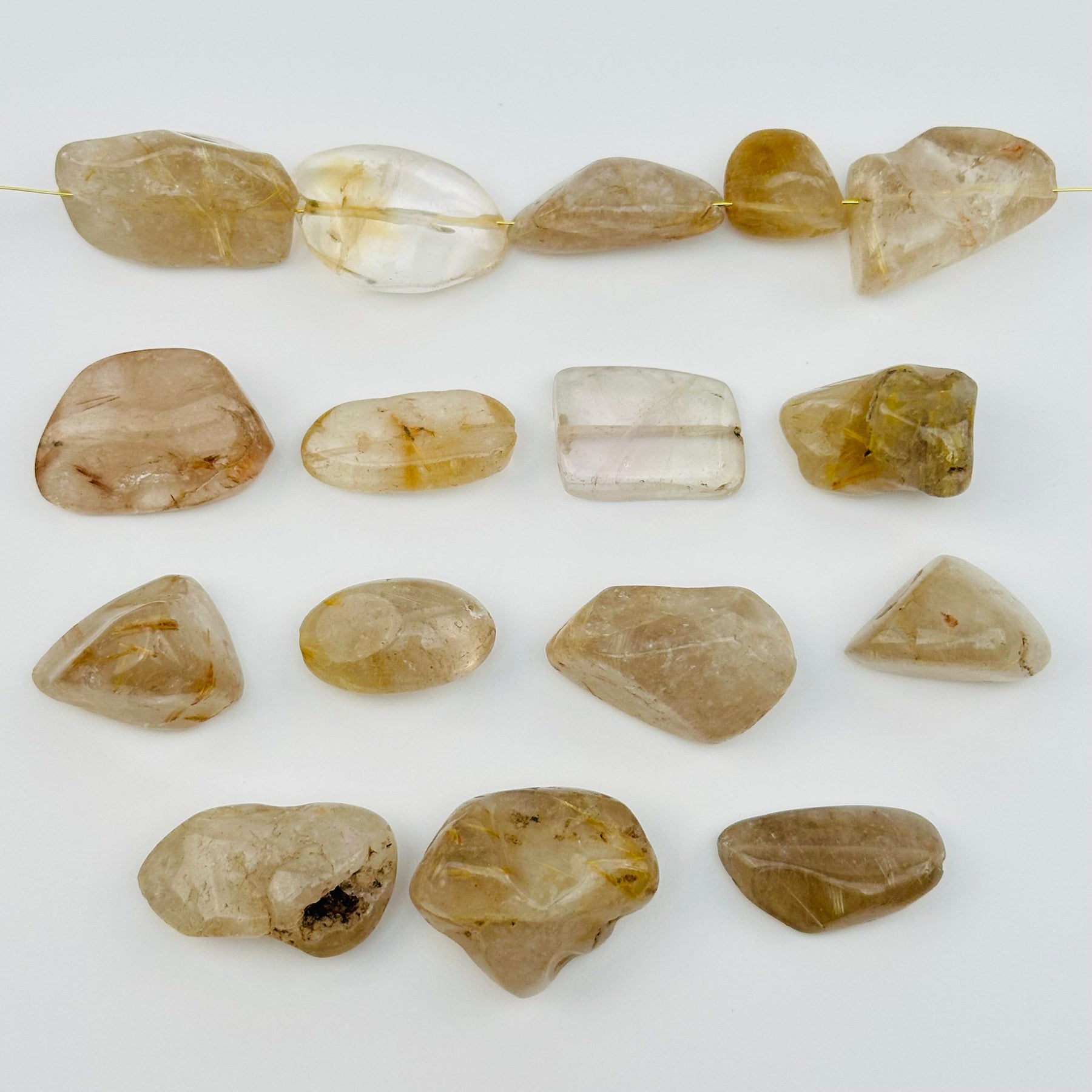 Add depth, texture, and sparkle to your designs with these Rutilated Quartz tumbled beads, featuring natural golden needle-like inclusions. Each bead is polished smooth, allowing the unique rutile threads to shine through—giving every piece a distinct and eye-catching character. These beads are perfect for adding dimension to bracelets, necklaces, and spiritual designs. No two beads are alike.