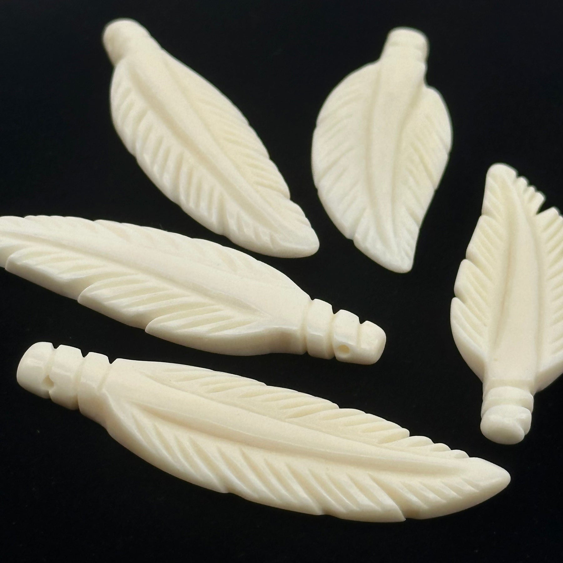 This listing is for ONE (1) White carved bone feather top drilled bead - by size -