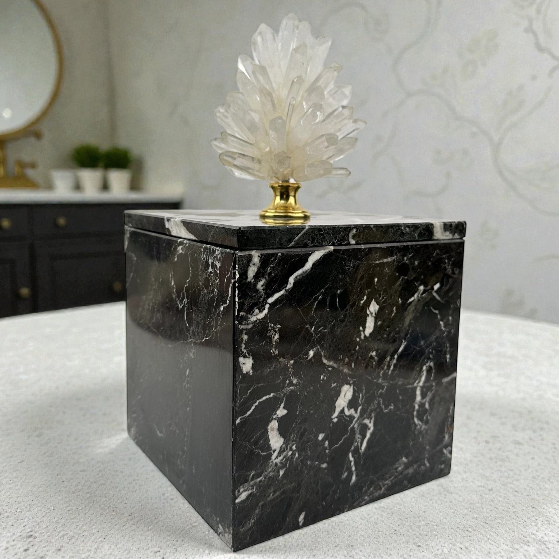 This listing is for ONE (1) Crystal Point Pinecone on Marble Box - One of a Kind -