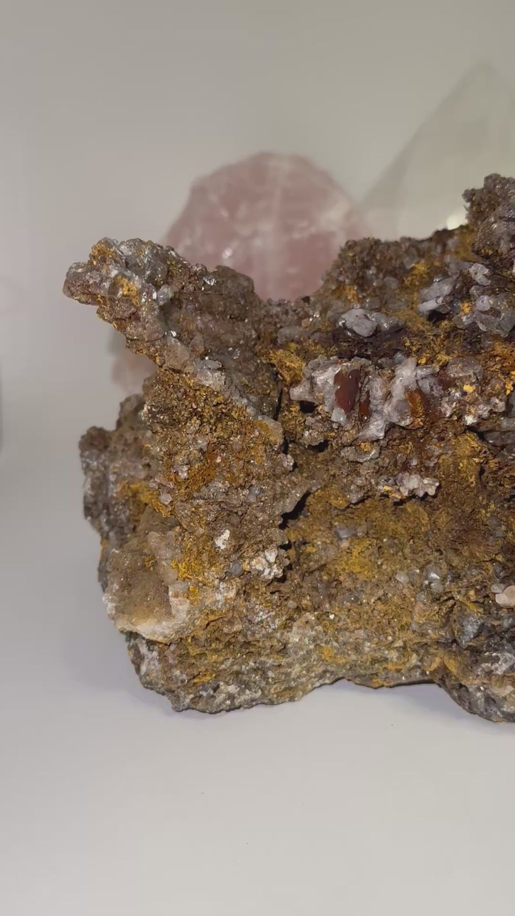 This unique crystal cluster is the perfect blend of raw beauty and natural sparkle—ideal for anyone who loves minerals with personality. Its richly textured matrix is packed with sparkling quartz growth, hidden pockets, and intricate formations that draw the eye in and invite closer inspection. Every angle reveals something new, making it an impressive statement piece for your home, office, or crystal display.
