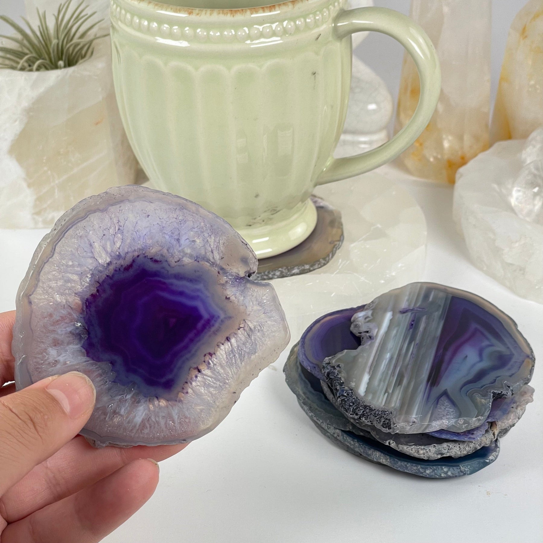 This listing is for EIGHT (8) purple agate slice coasters. UP7-87