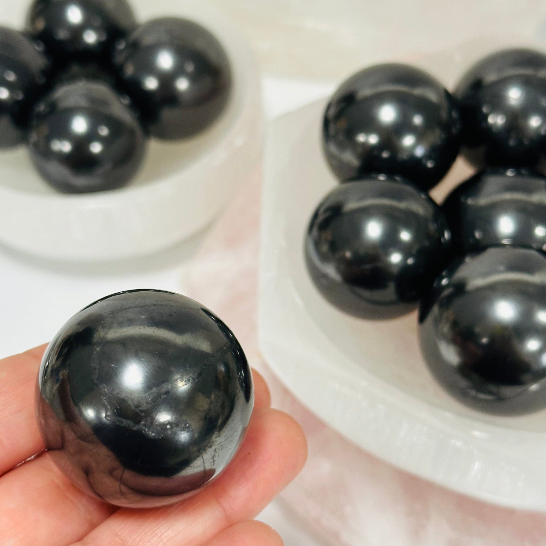 The spherical shape of the Shungite crystal is said to emit energy evenly in all directions, contributing to a harmonious atmosphere. This makes it a popular choice for spaces dedicated to relaxation or spiritual practices.