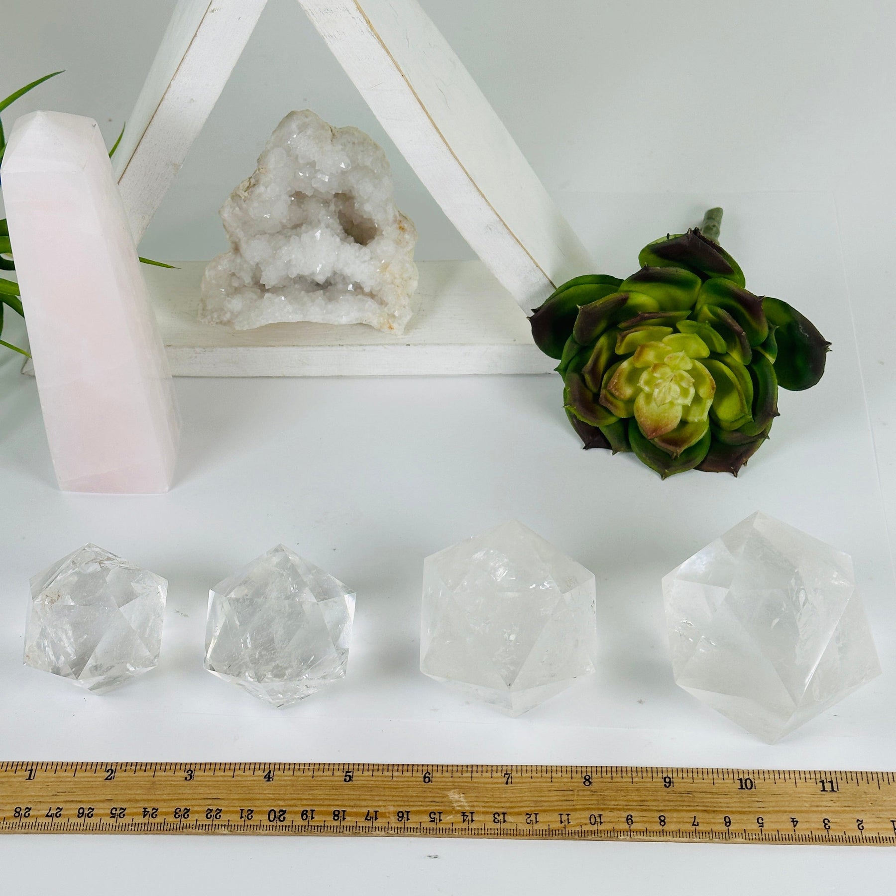 Crystal Quartz Icosahedron - You Choose all variants with ruler for size reference
