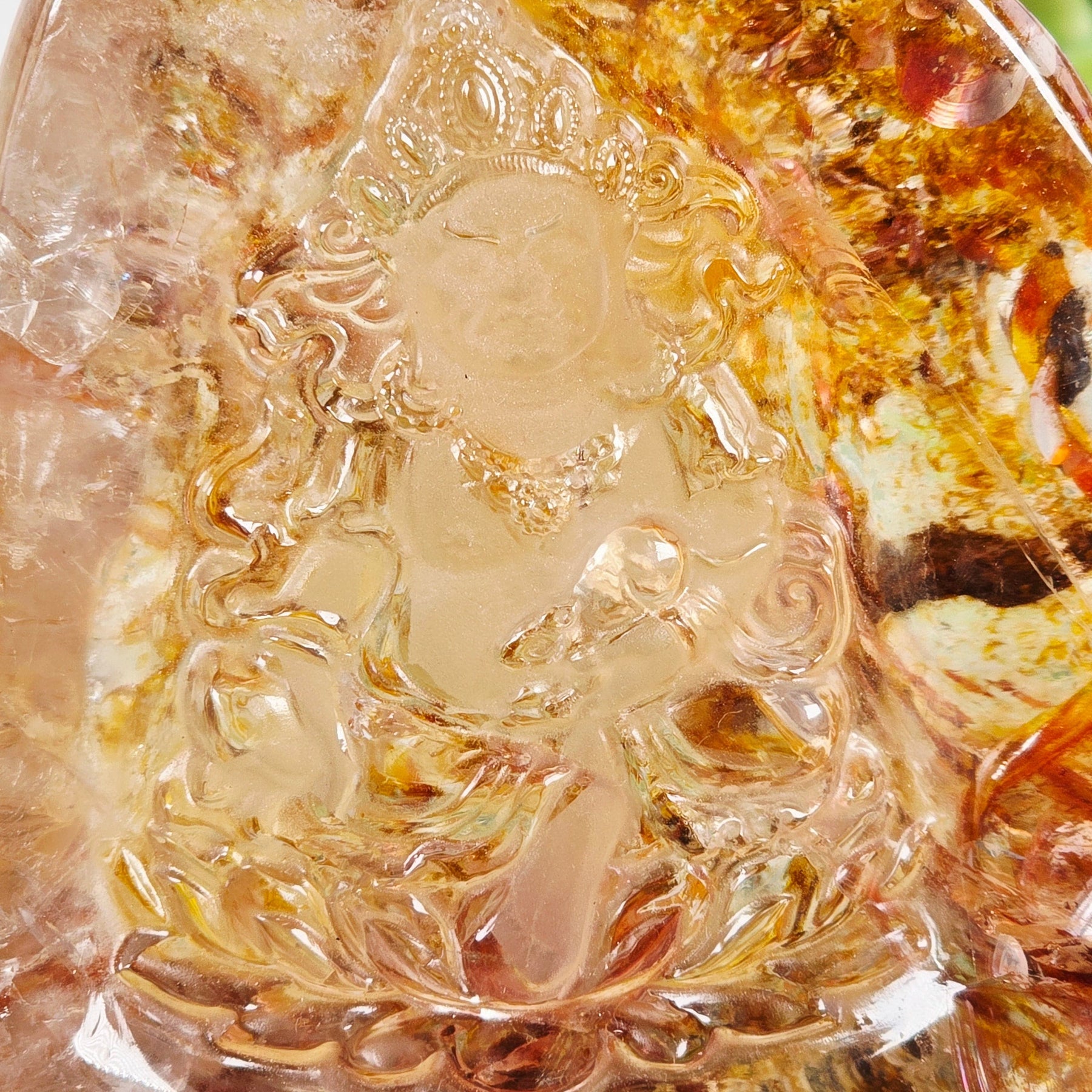 Lodalite Garden Quartz Buddha Crystal Sculpture on Carved Wooden Base from China - One-of-a-Kind closeup for detail