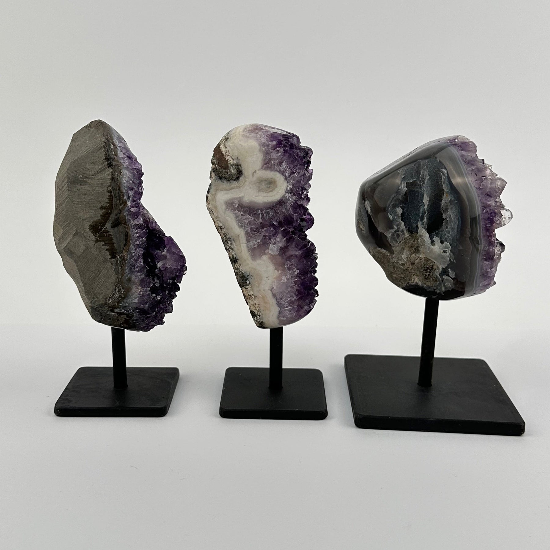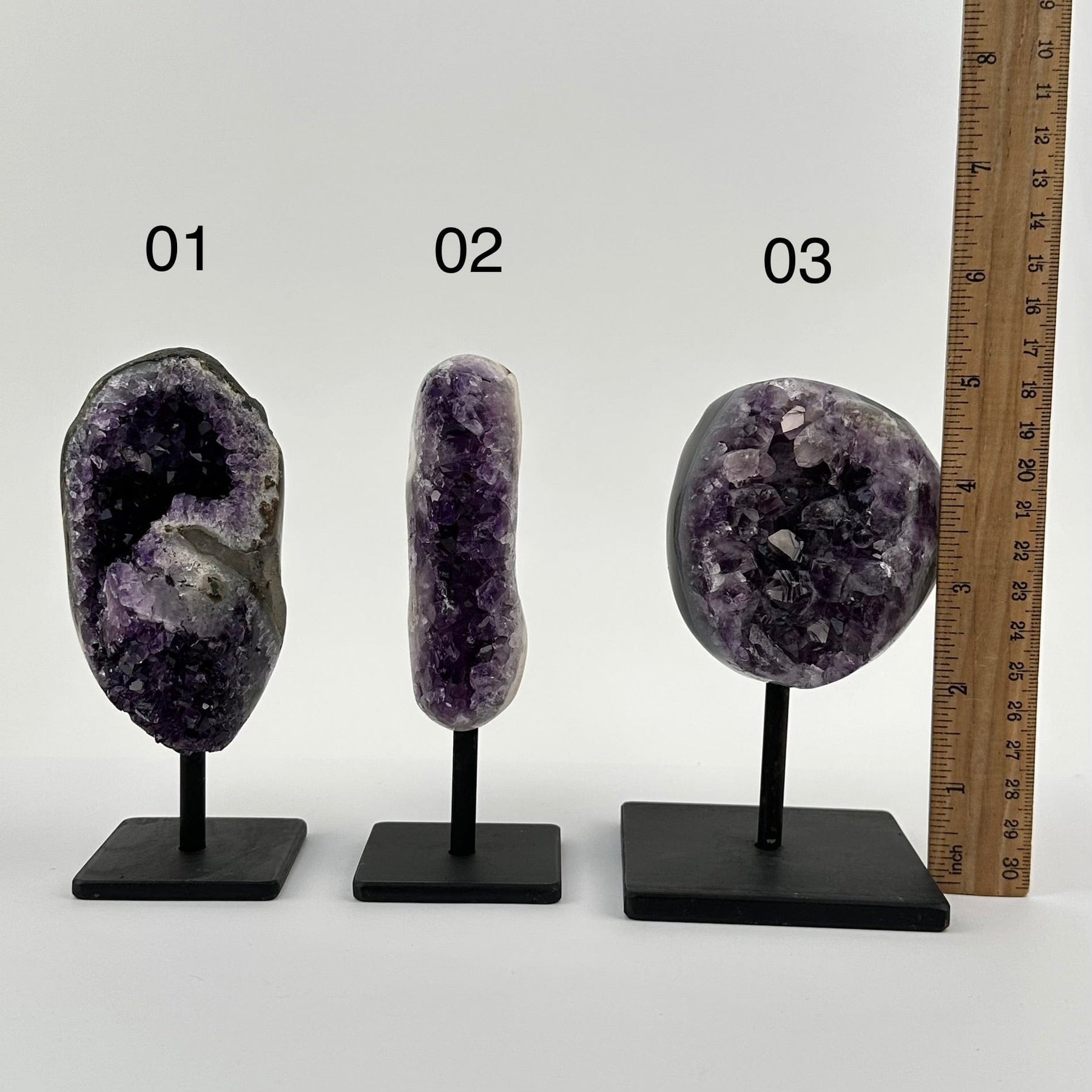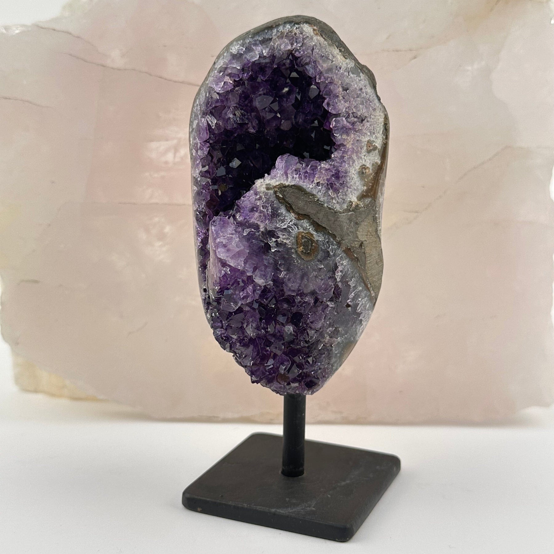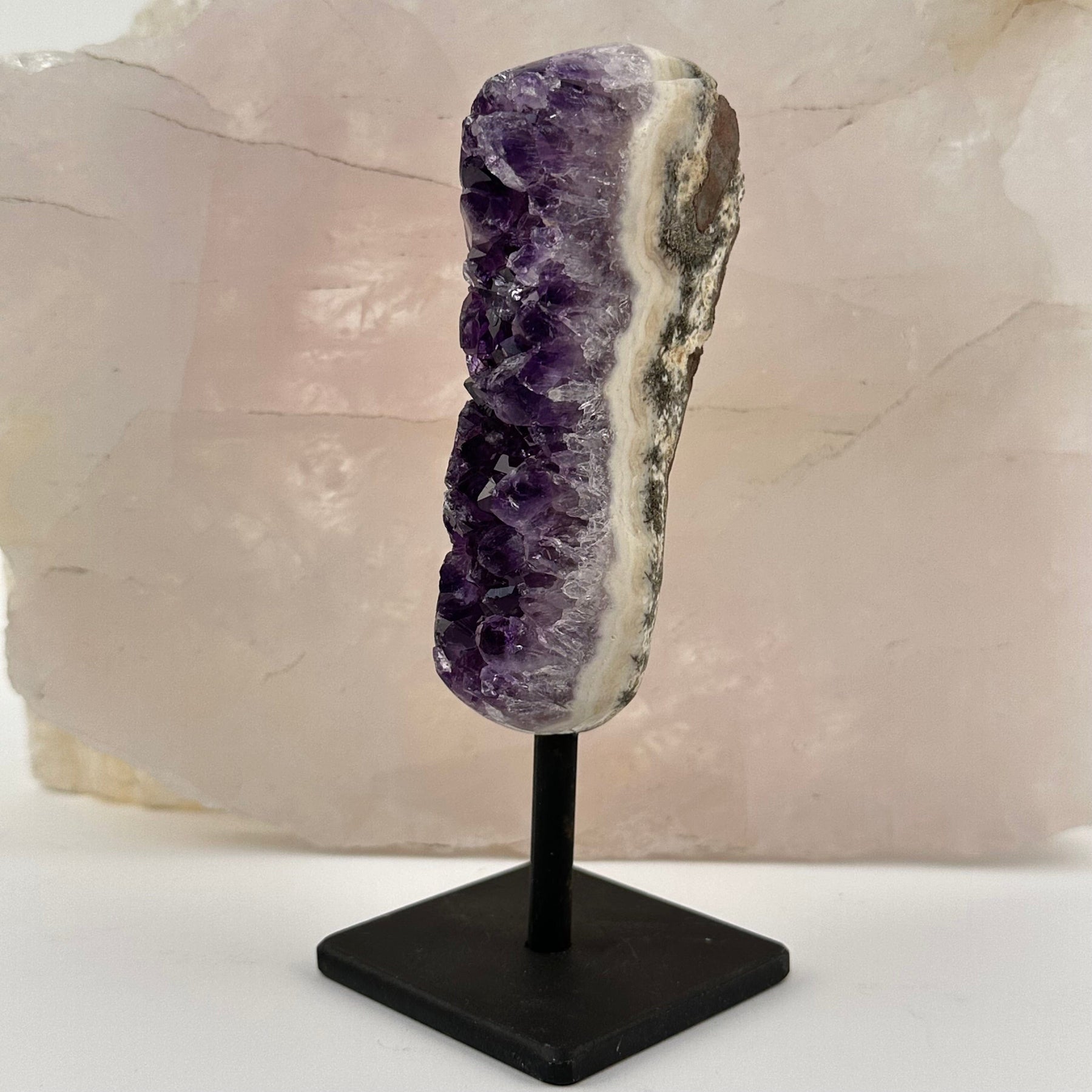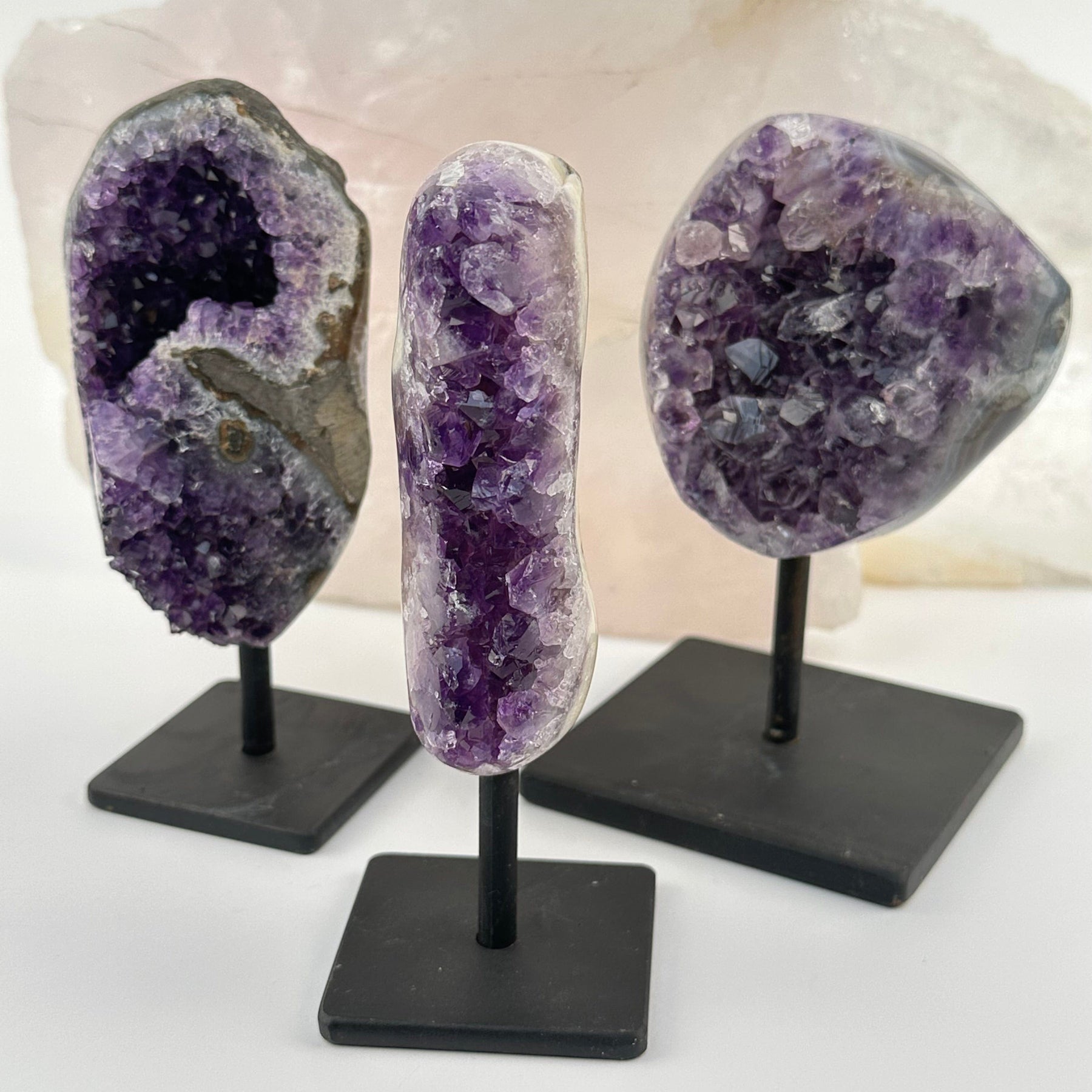 Content:One of a kind Amethyst Stalactite Crystal on a Metal Stand - YOU CHOOSE