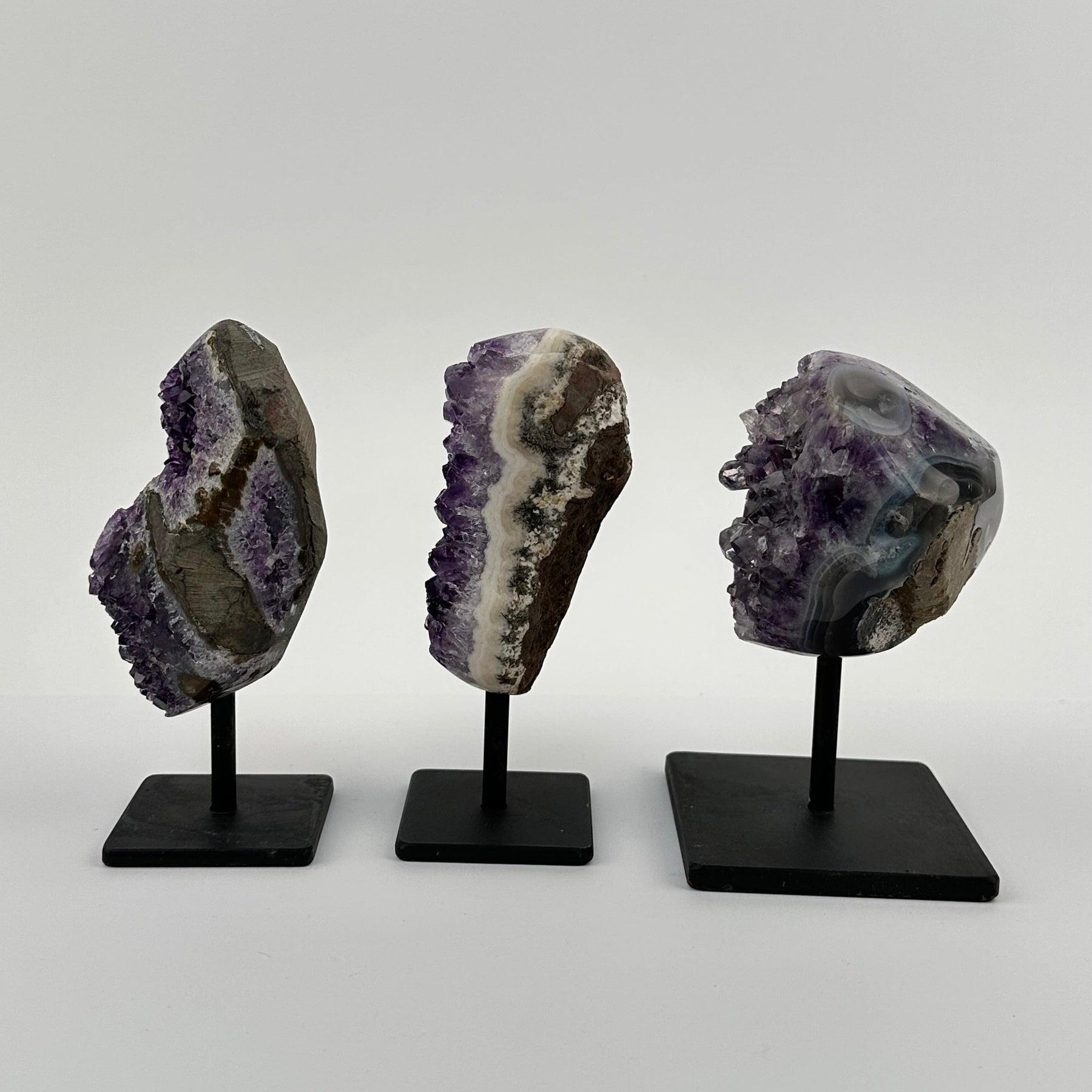 Unique Combination: Rich violet amethyst crystal, intricate agate banding, and often a sparkling druzy or quartz center, each piece is a stunning geological masterpiece.