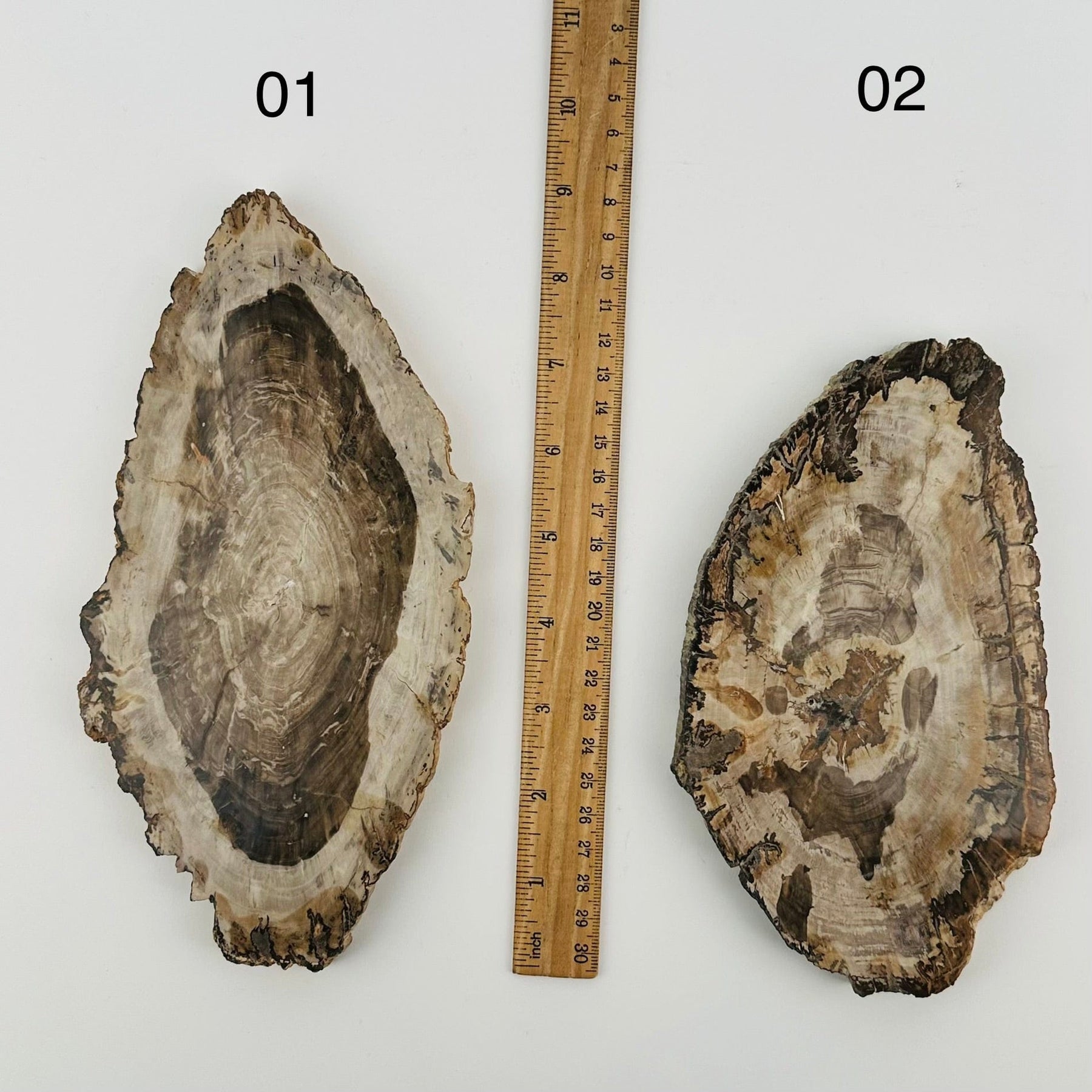 Petrified Wood Crystal Slab YOU CHOOSE next to a ruler for size reference