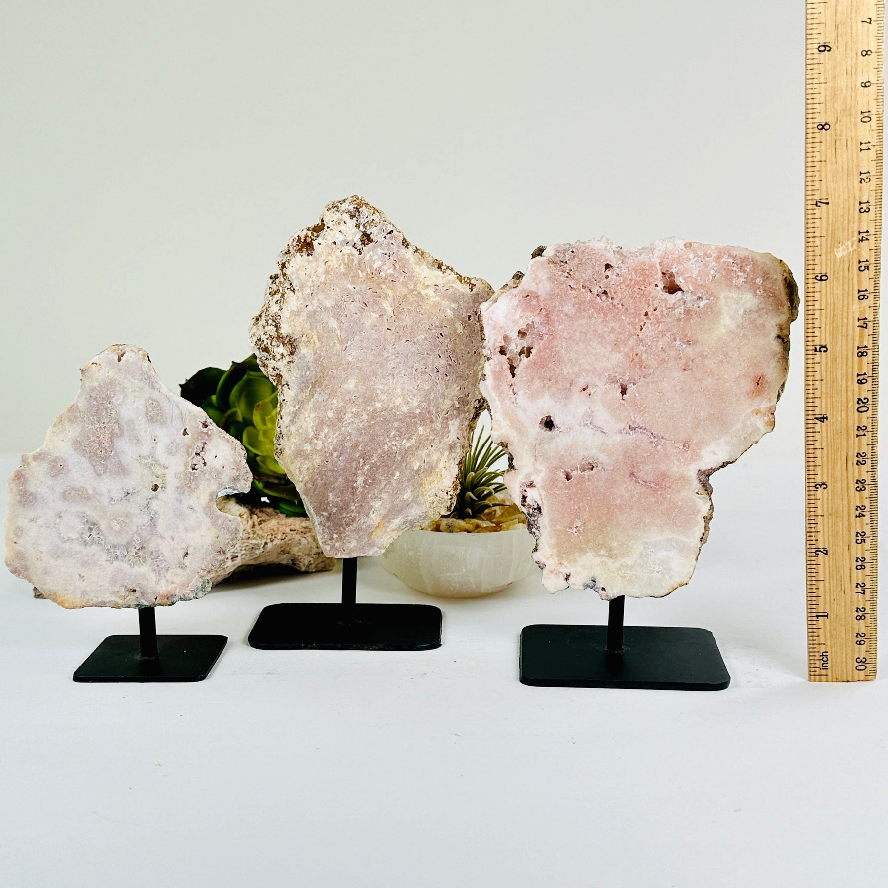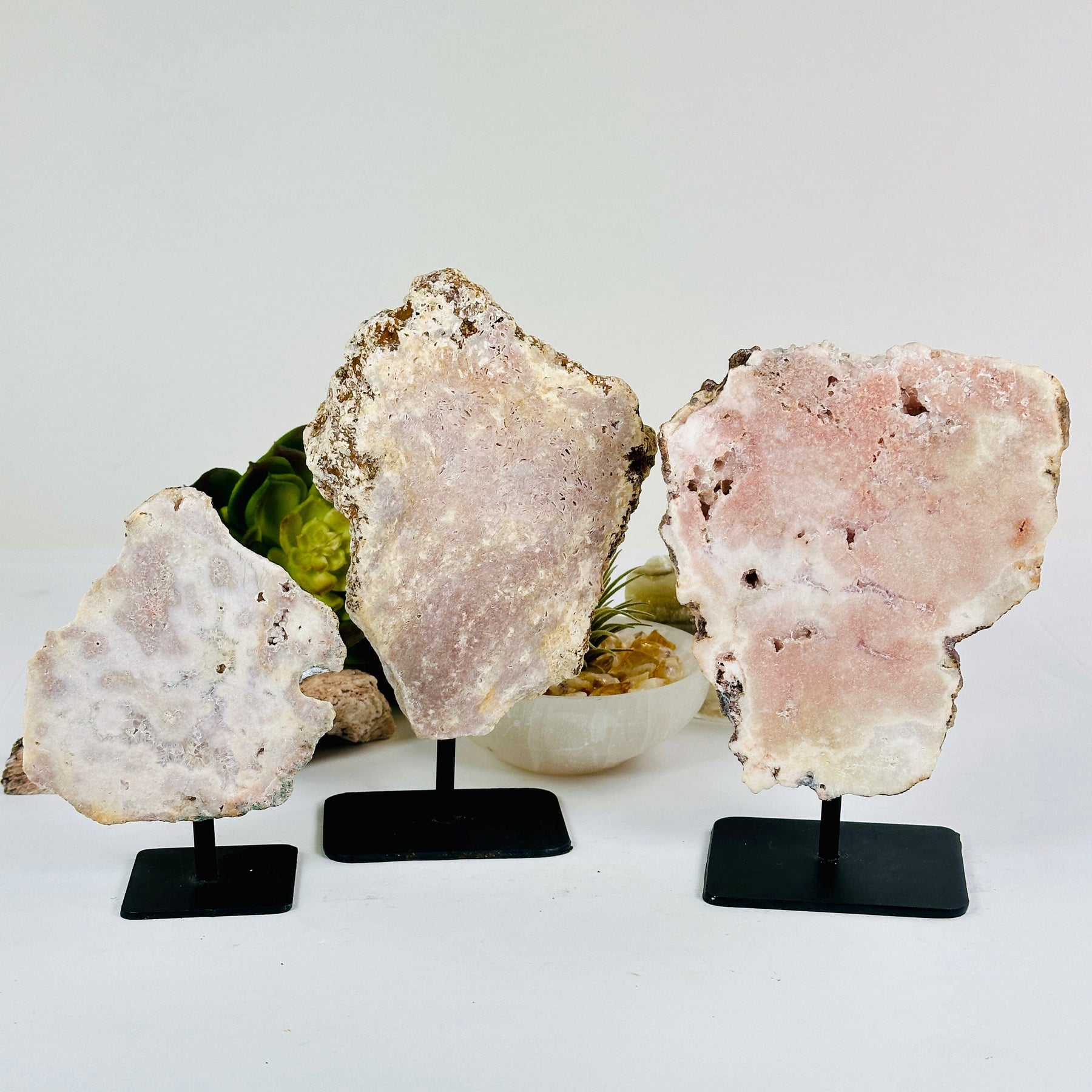 Ease of Display: These pink amethyst crystals have been placed on a metal stand for a convenient display.