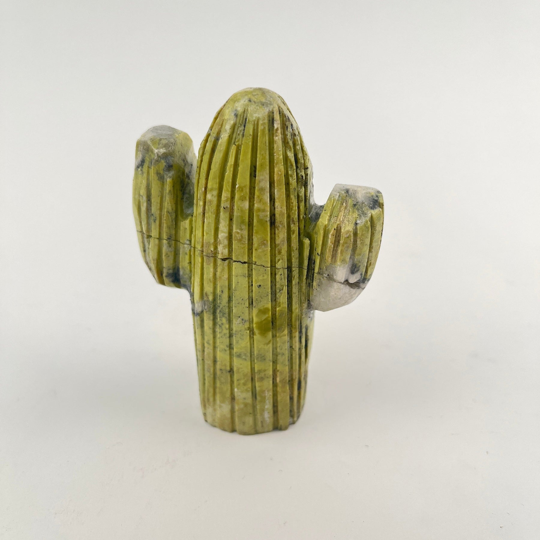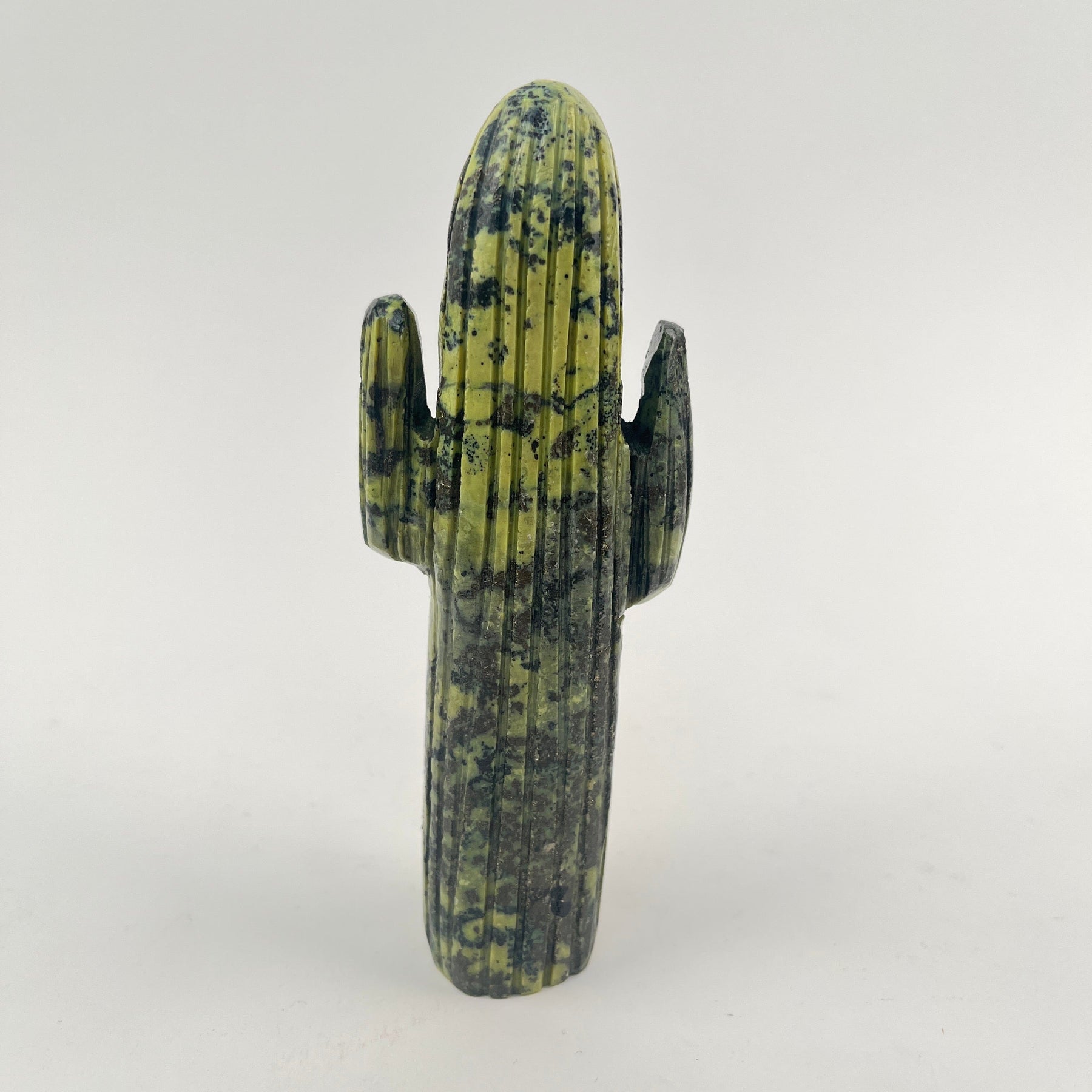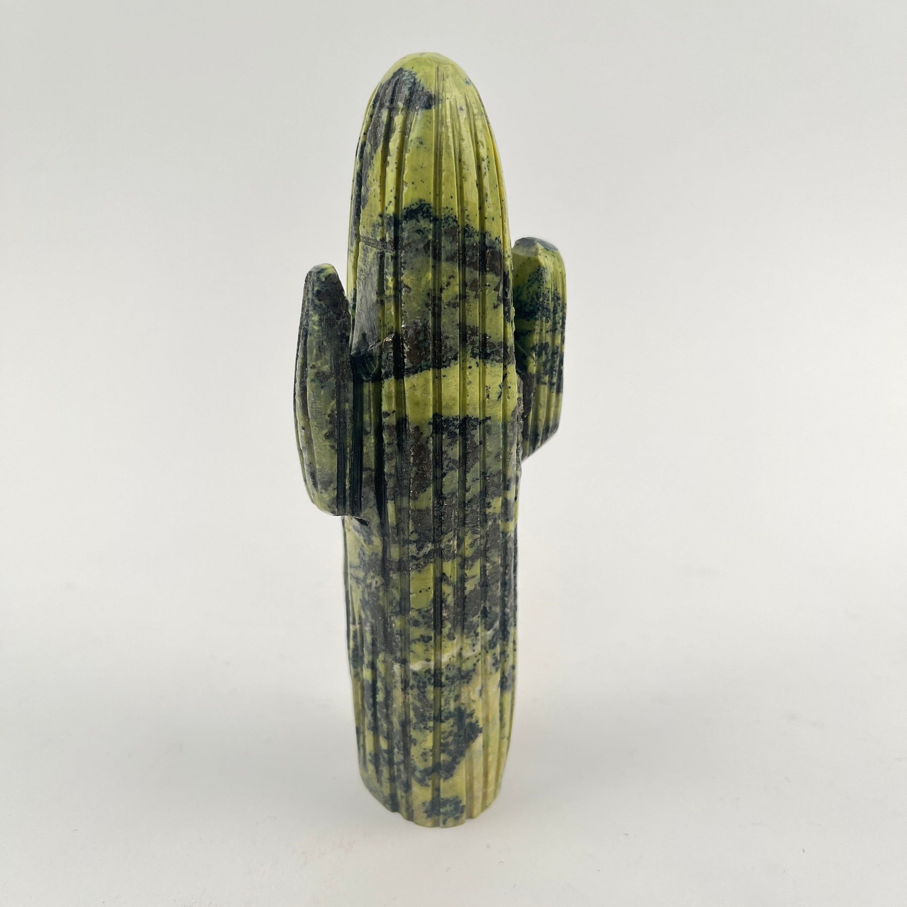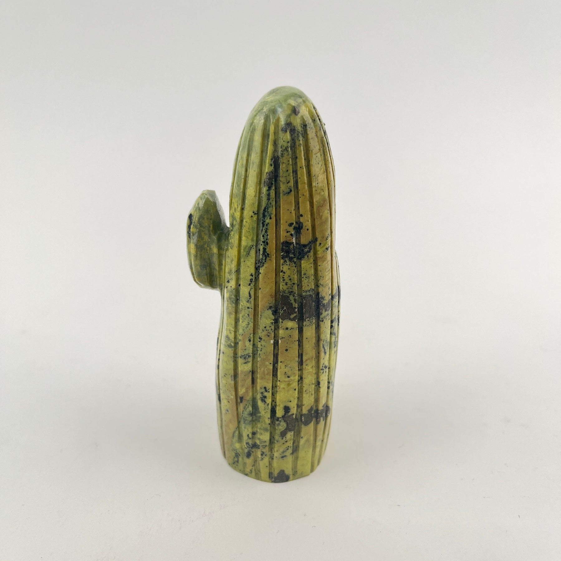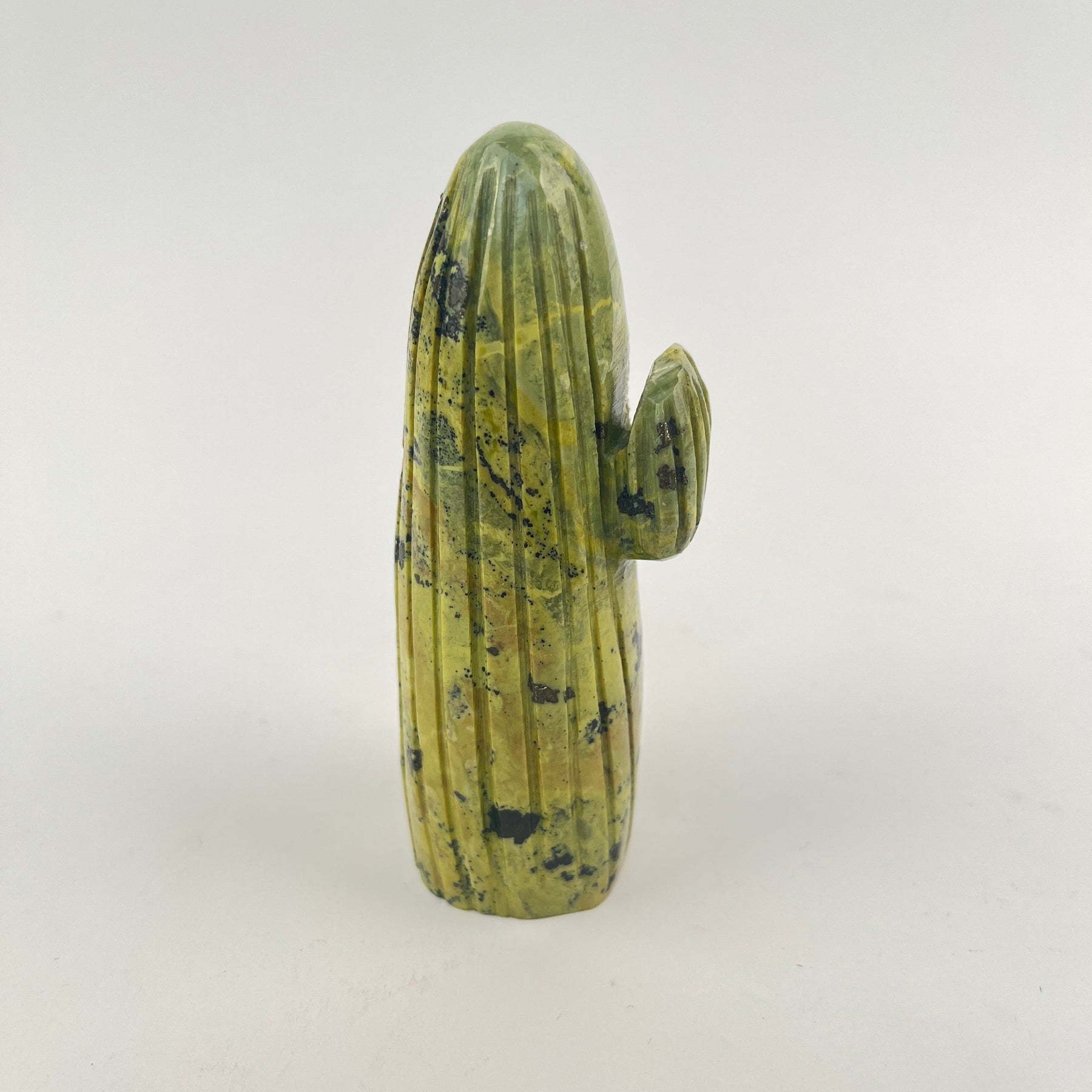 Serpentine Crystal Cactus is crafted from genuine Serpentine, this unique gemstone carving features rich green tones with natural marbling and organic variations that make every piece one of a kind.