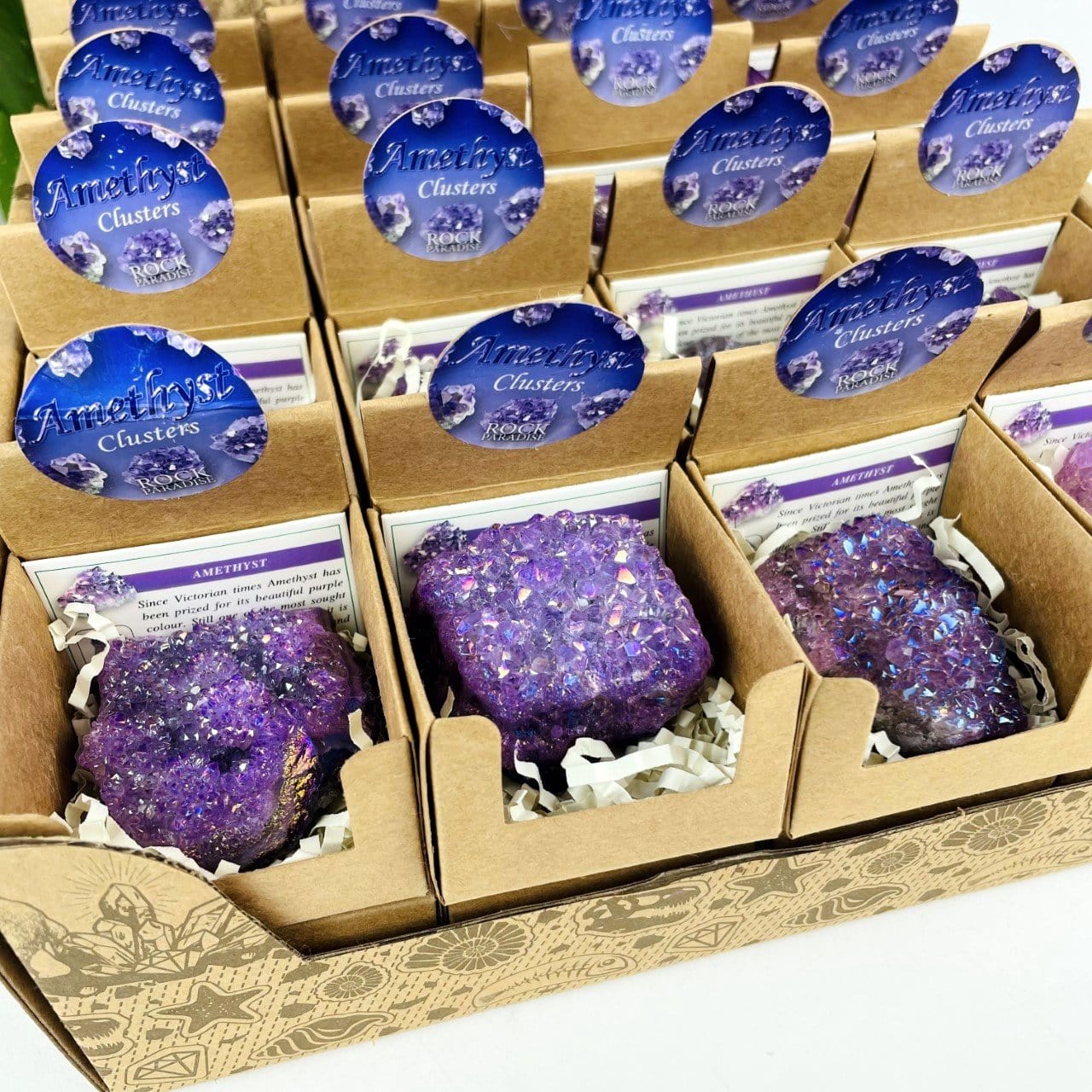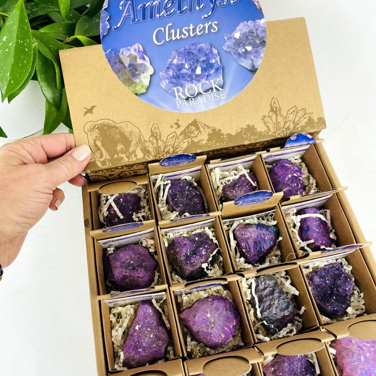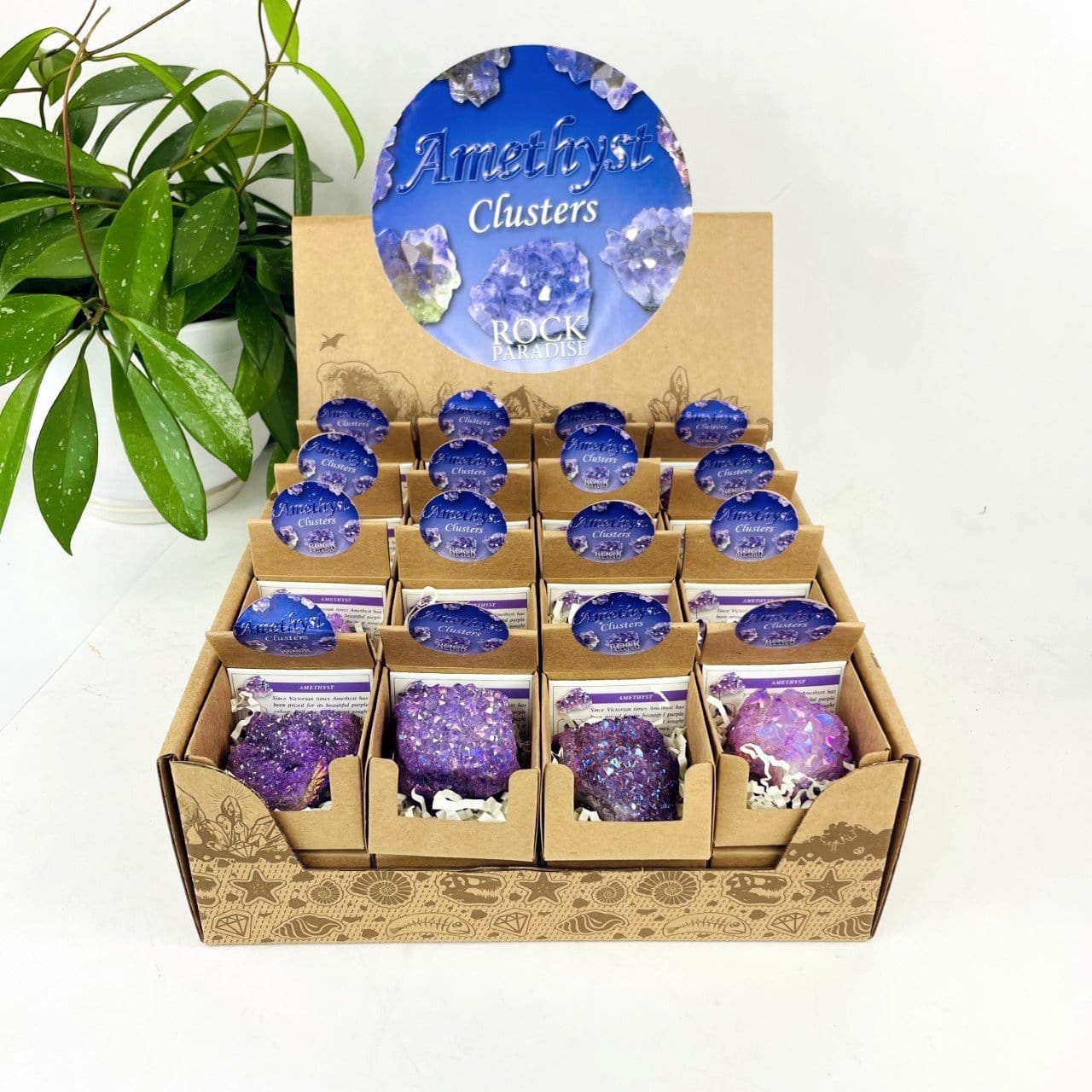 Amethyst Aura Crystal - Box of Geodes - Point of Purchase Display