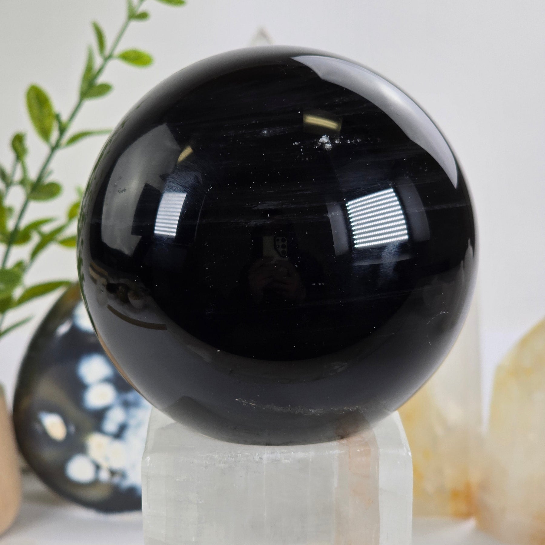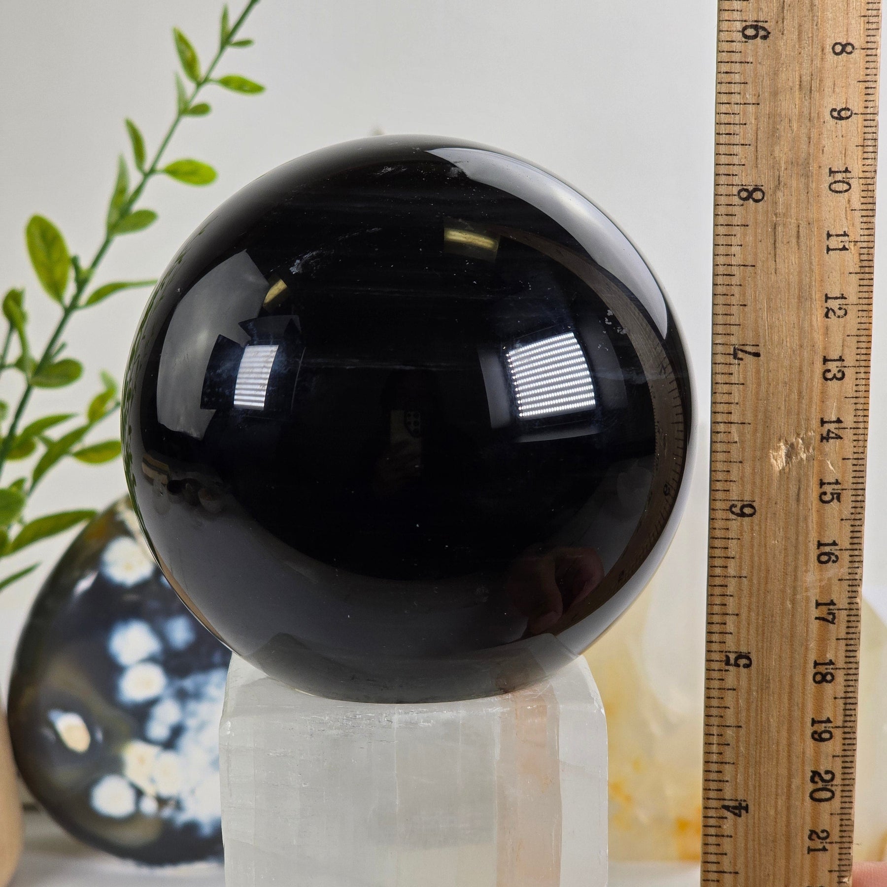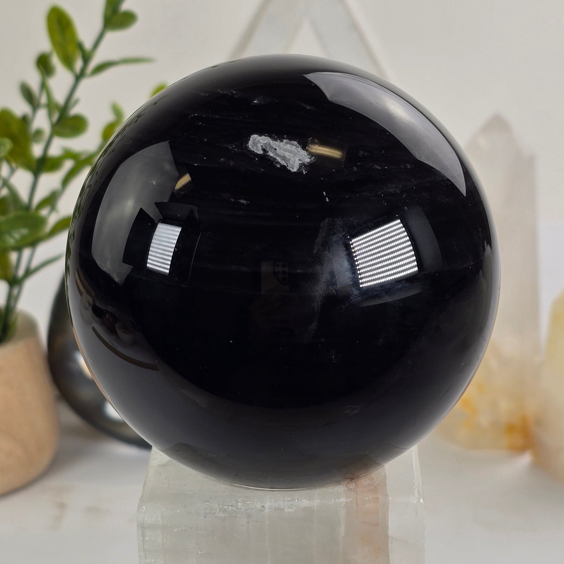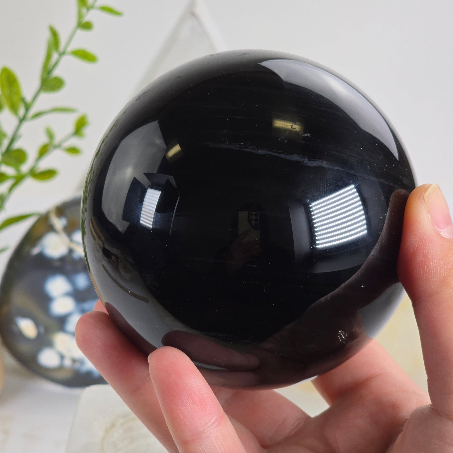 One of a Kind: You will receive this exact black agate sphere as pictured.