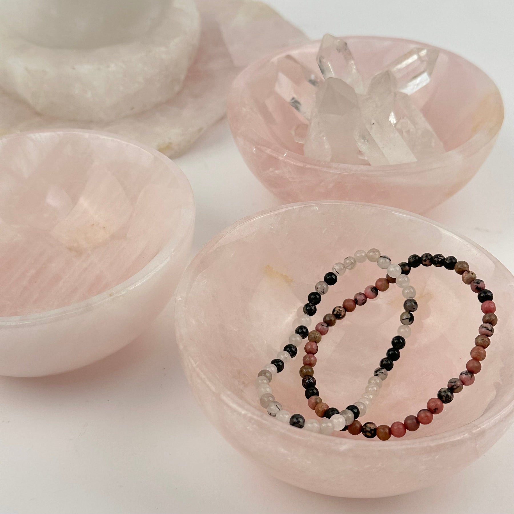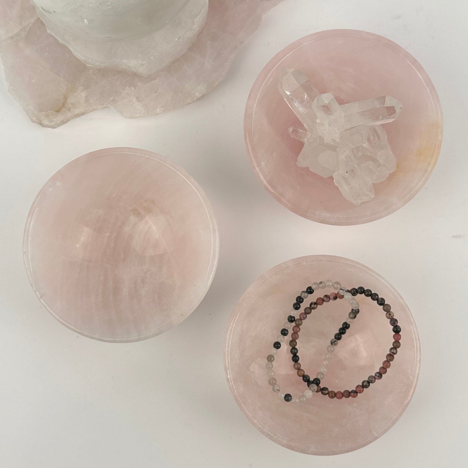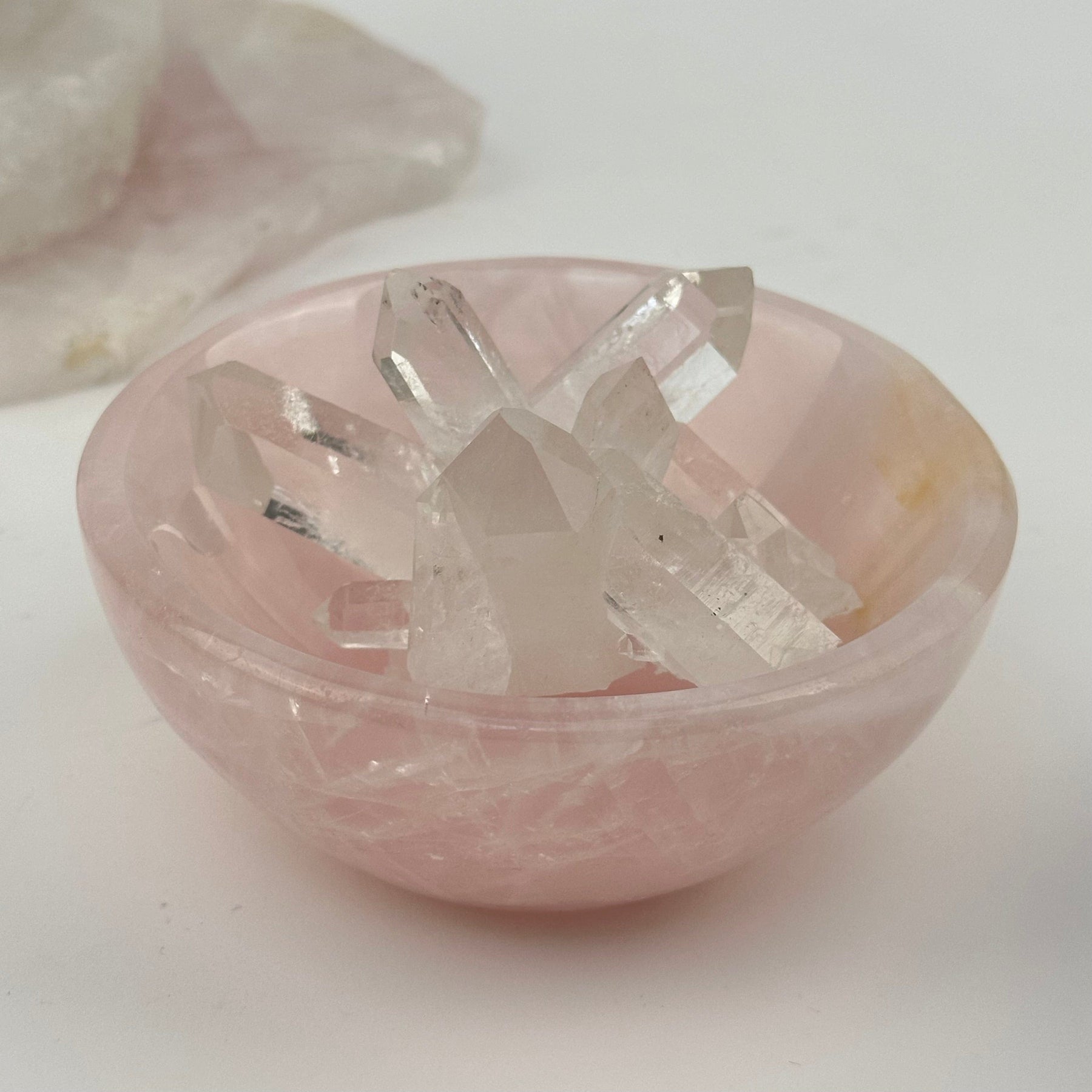 Elevate your space with the elegance of our Rose Quartz Crystal Bowl. Each gemstone bowl is a testament to the unique beauty of natural stones, with slight variations in size and characteristics. These gemstone sculptures are not just decorative pieces but also vessels of the stone's renowned loving energies.