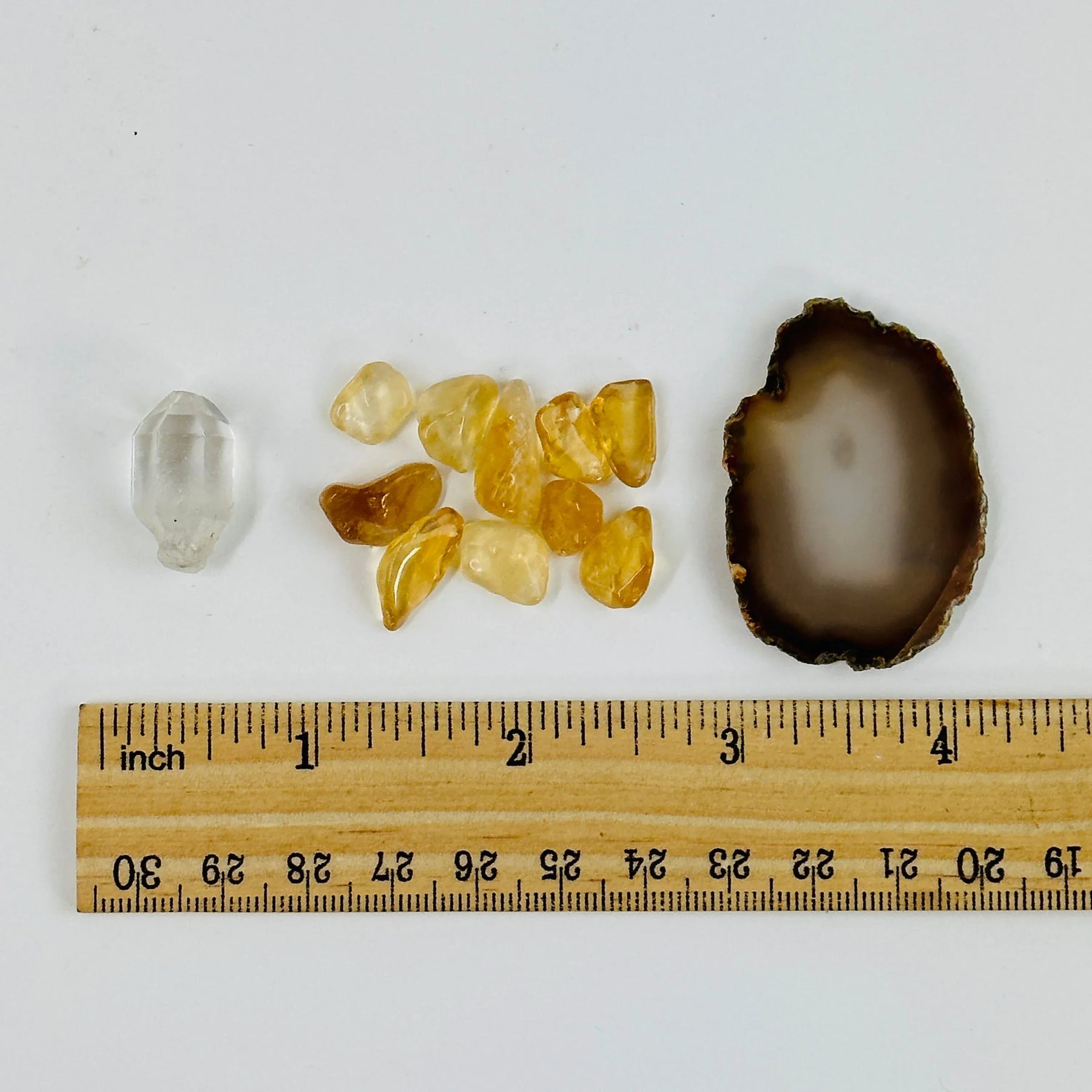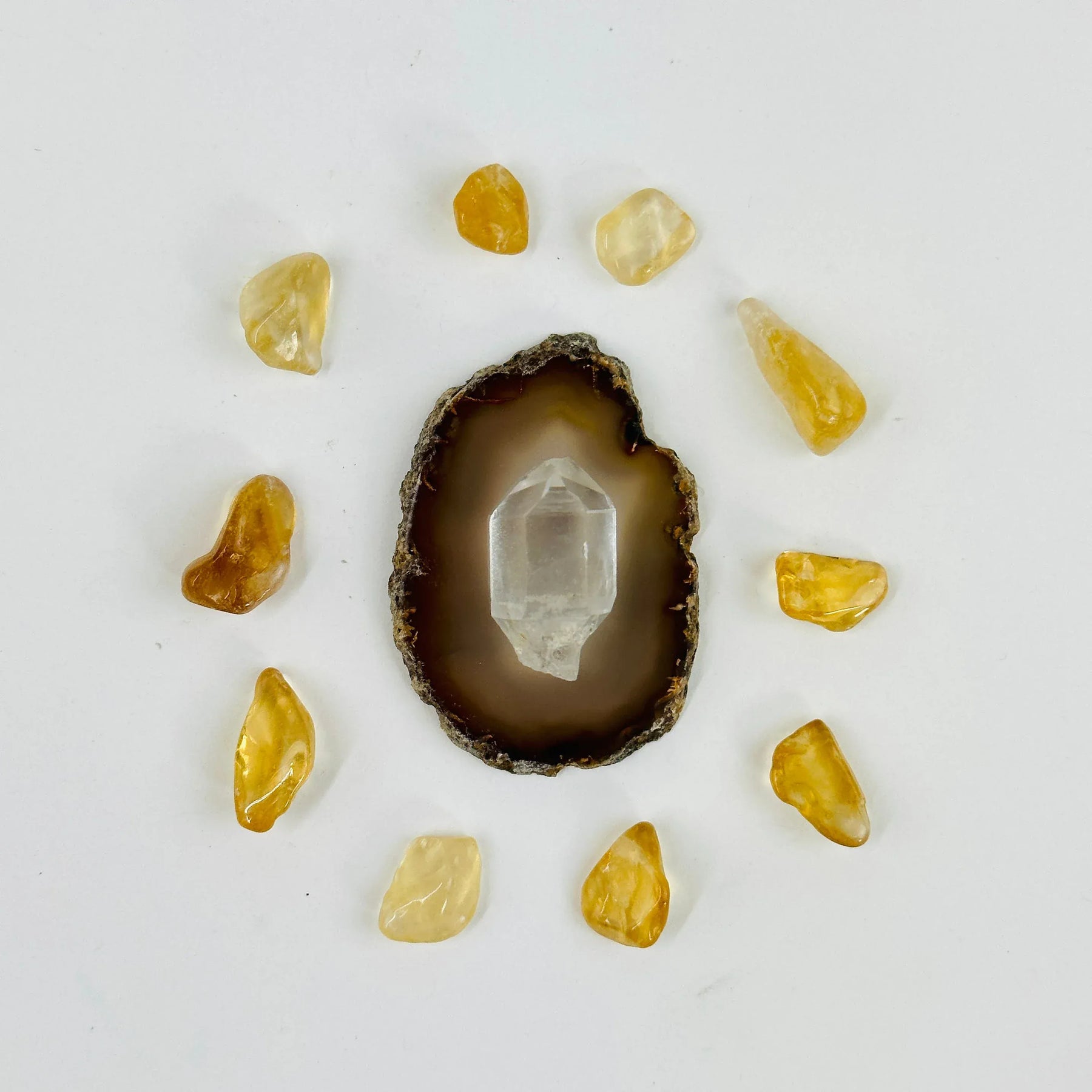 Crystal Variety Pack Agate Slice, Tumbled Citrine, Crystal Quartz Point
