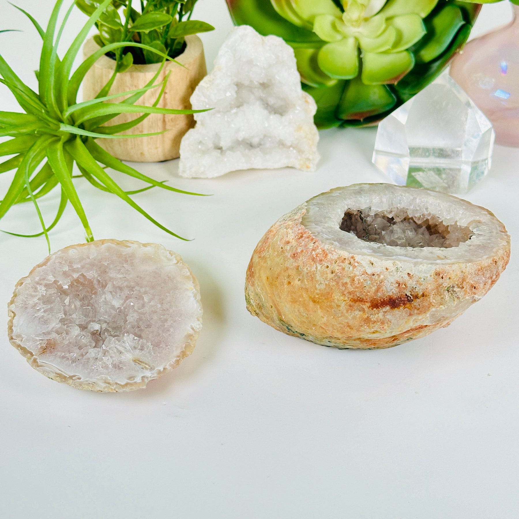 Geode Box with Lid: The hollow center makes a natural box shape with the cut lid able to close or open for a lovely display.