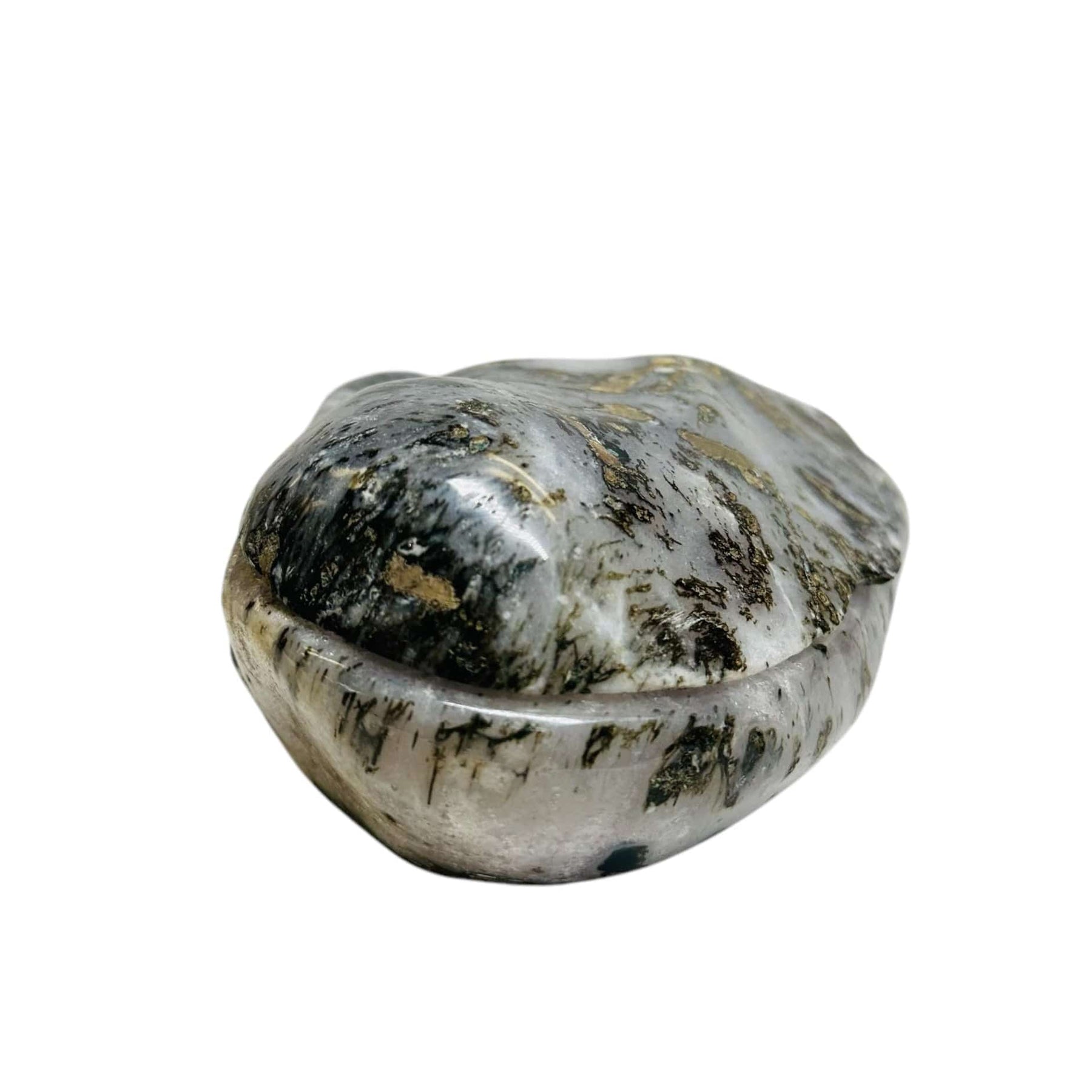 This Amethyst Crystal Geode box will capture everyone's attention. The top can be removed to reveal a gorgeous and sparkling amethyst center. The crystal can help bring positive energy into any room while also being a beautiful decoration.