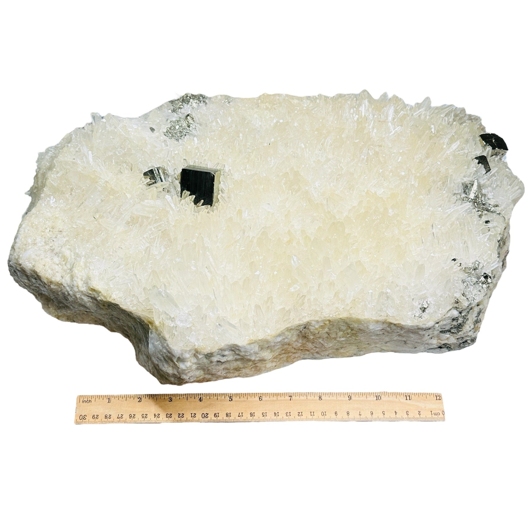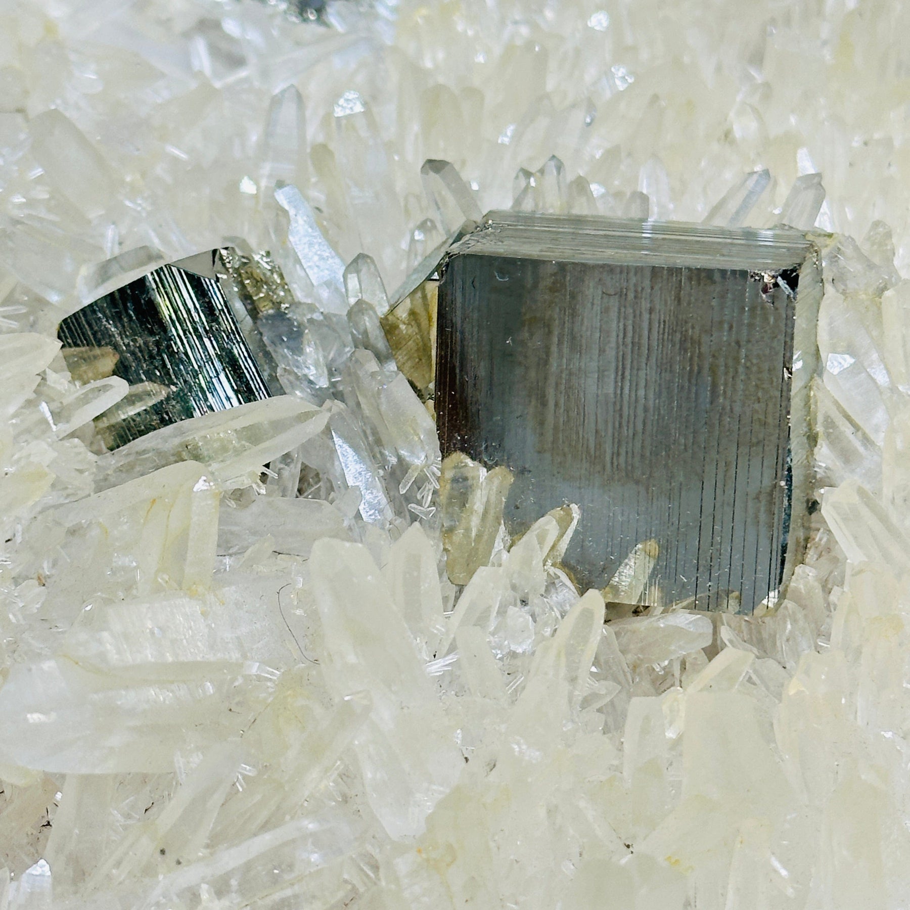 Cubic Pyrite on High Grade Crystal Quartz Cluster - Rare Find