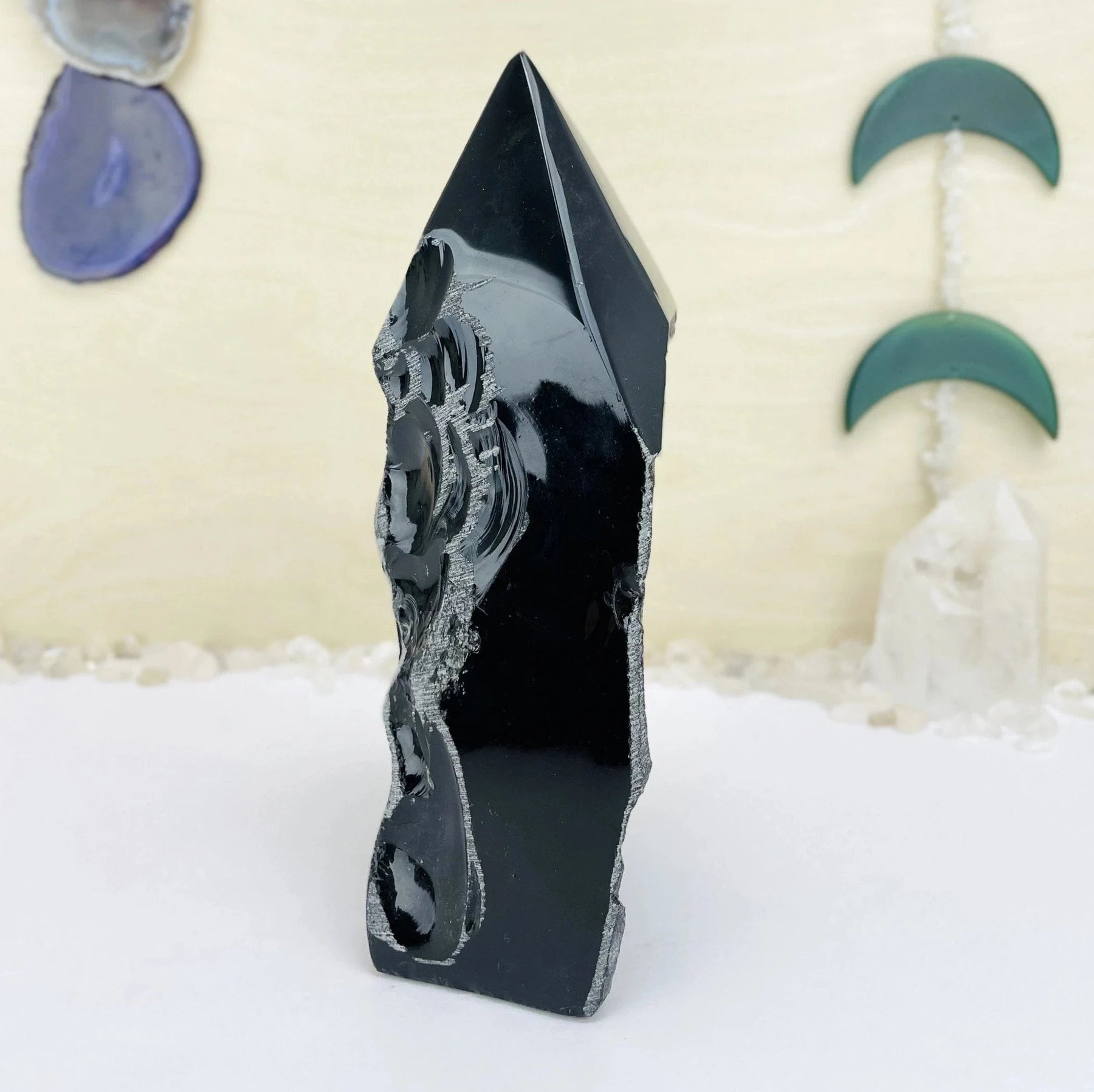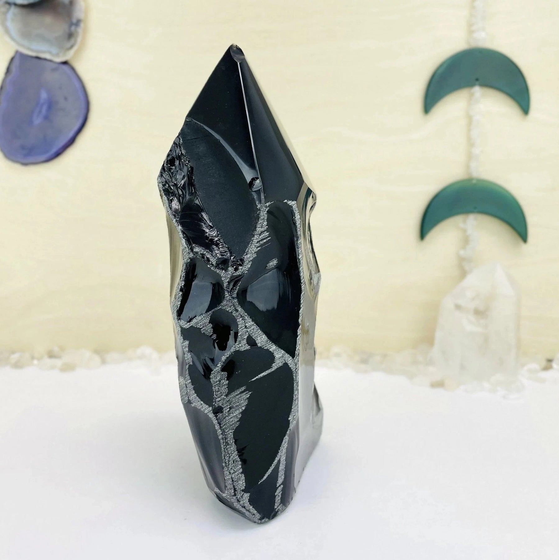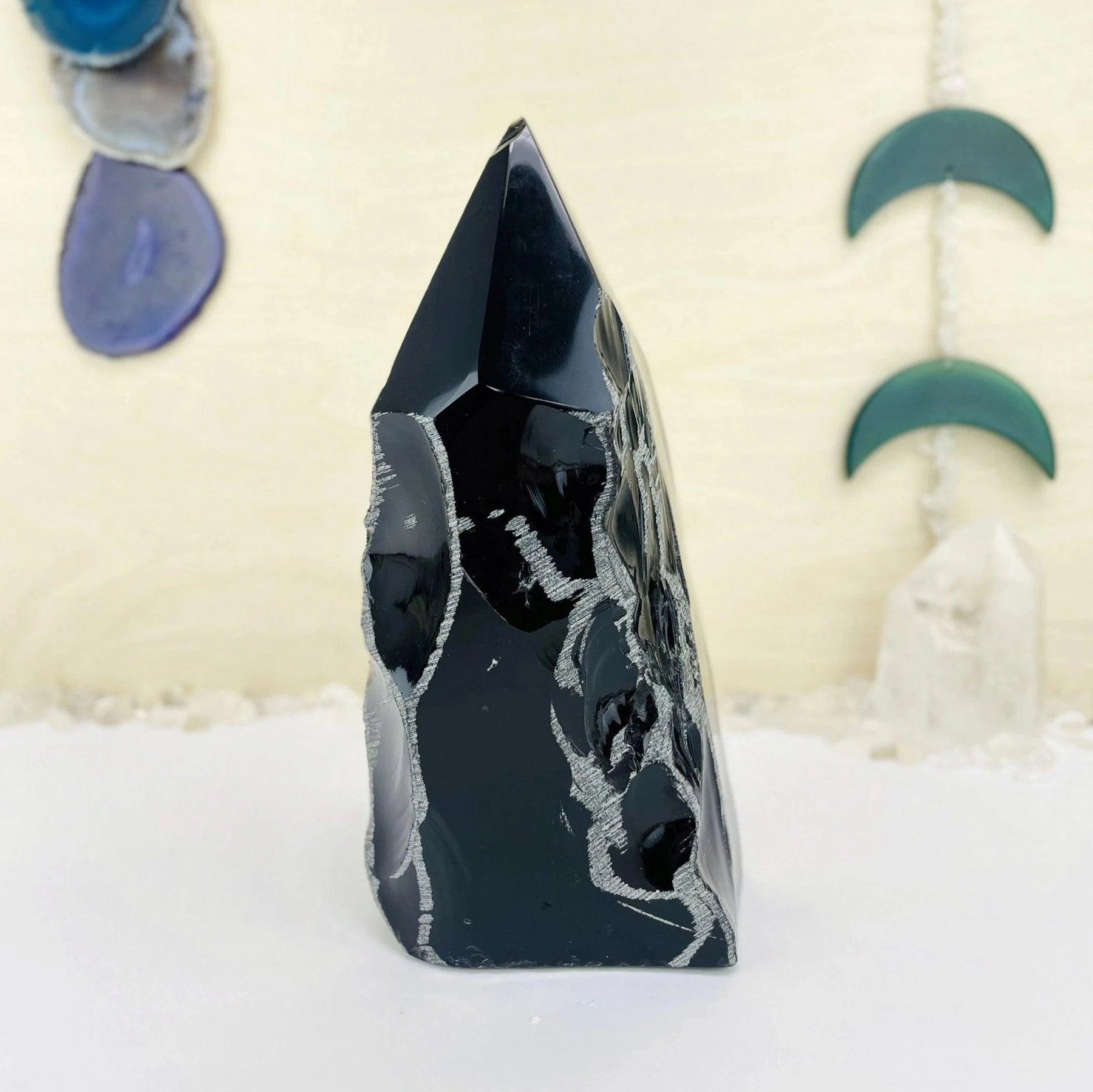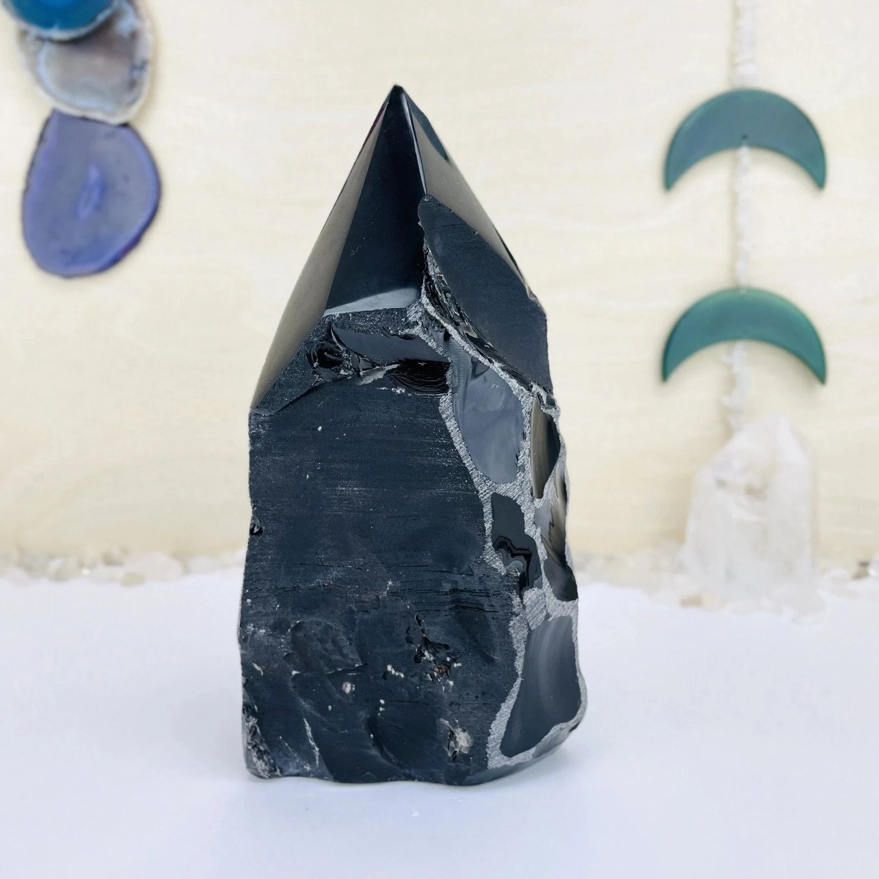 Beautiful large Black Obsidian Semi polished point. Perfect for displaying in your home, office or sacred space.