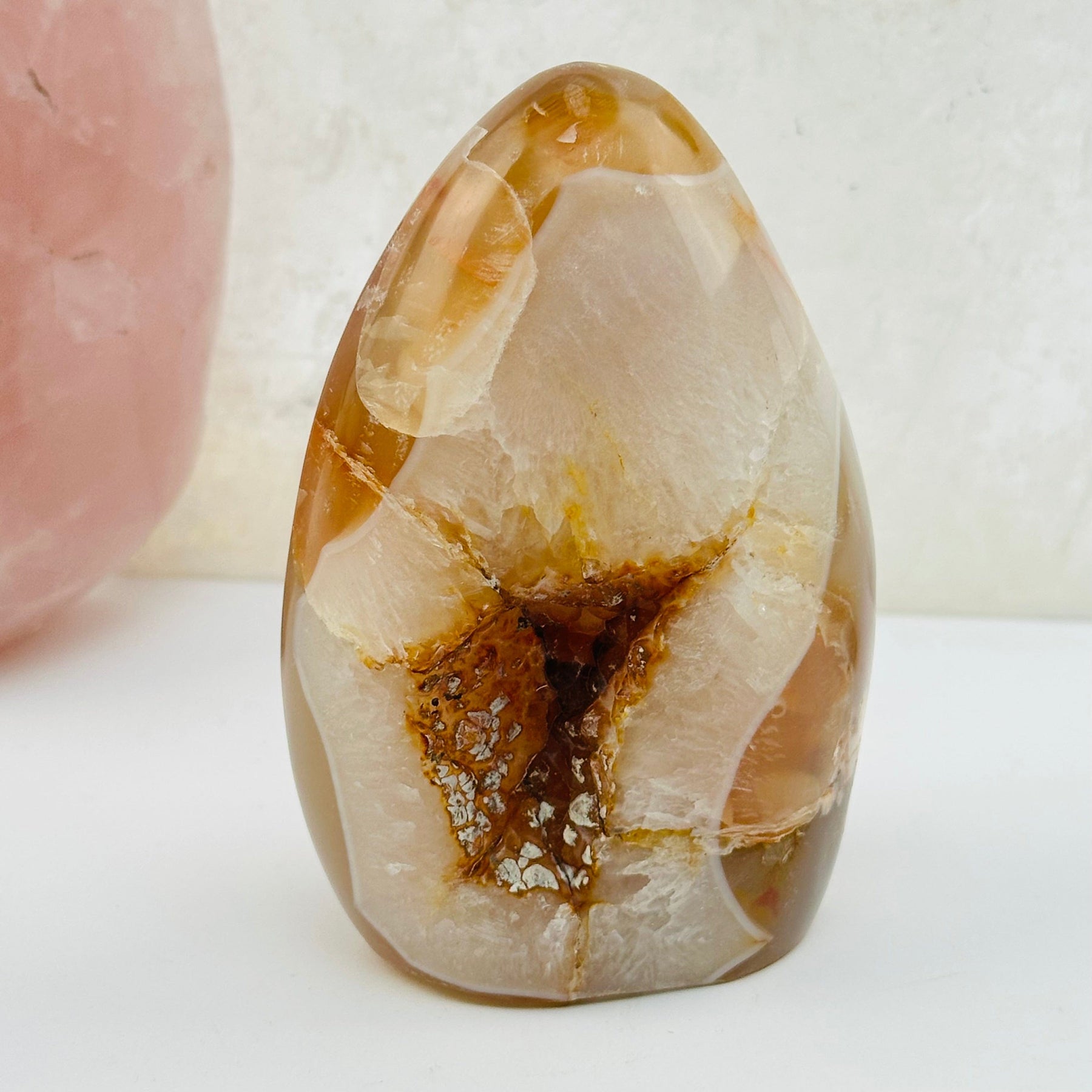 With hues of blush, cream, and soft peach, Flower Agate radiates a divine feminine frequency that’s both calming and empowering. It brings in peace, balance, and emotional healing.